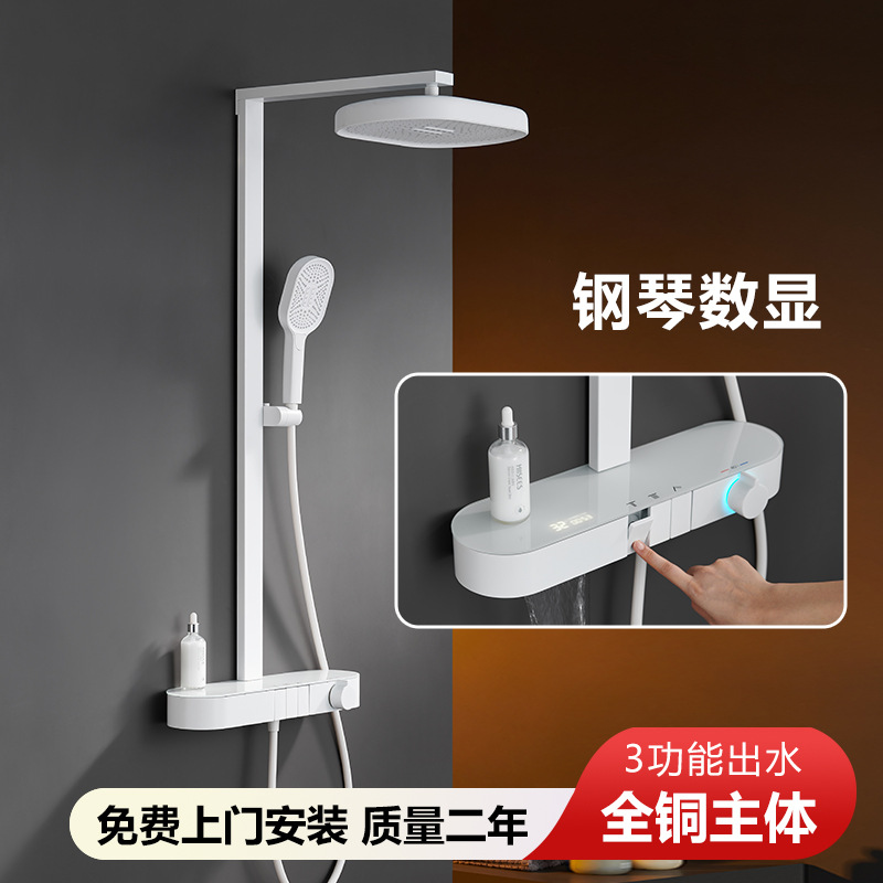 분위기 조명 전체 구리 샤워 피아노 키 샤워 가정용 일정한 온도 부스터 노즐 욕실 레인 샤워스토어 가기
