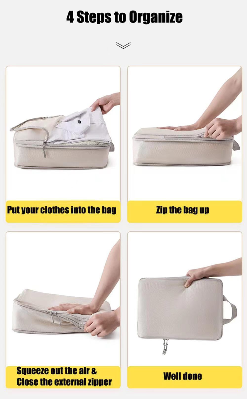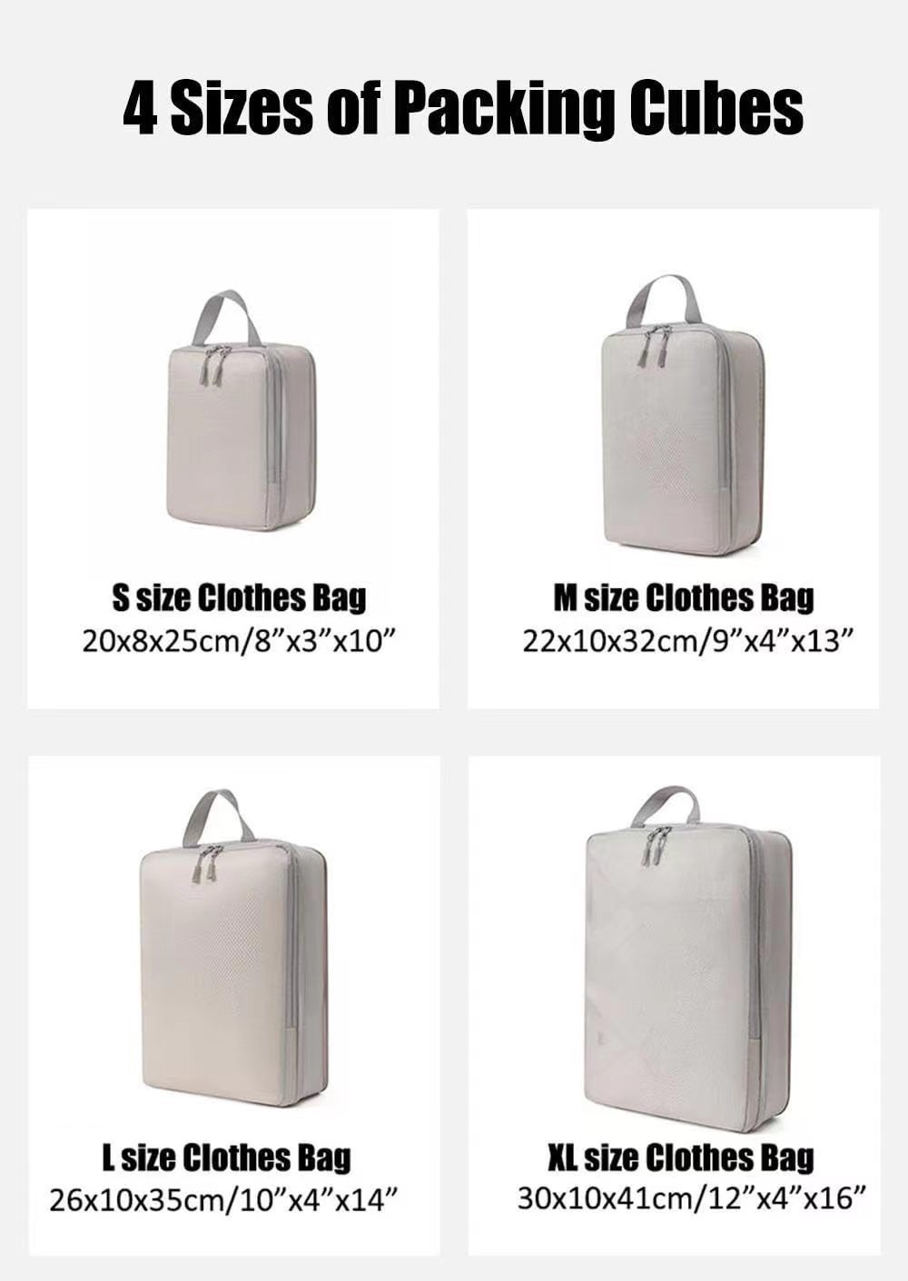 맞춤형 도면 및 샘플 접이식 압축 수납 가방 폴리에스터 4종 세트 의류 여행 가방 수납 통기성 방수