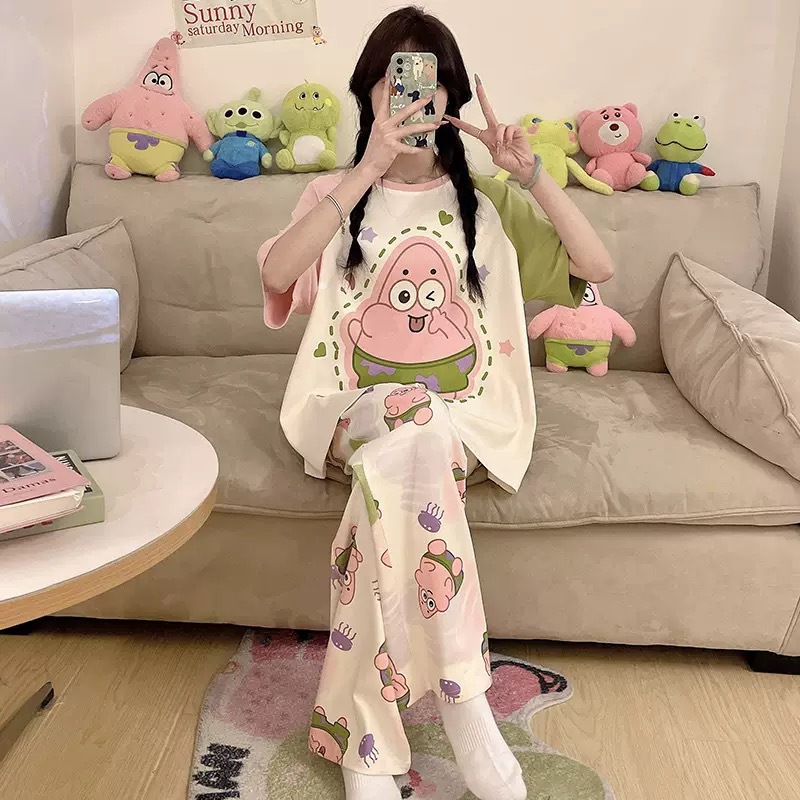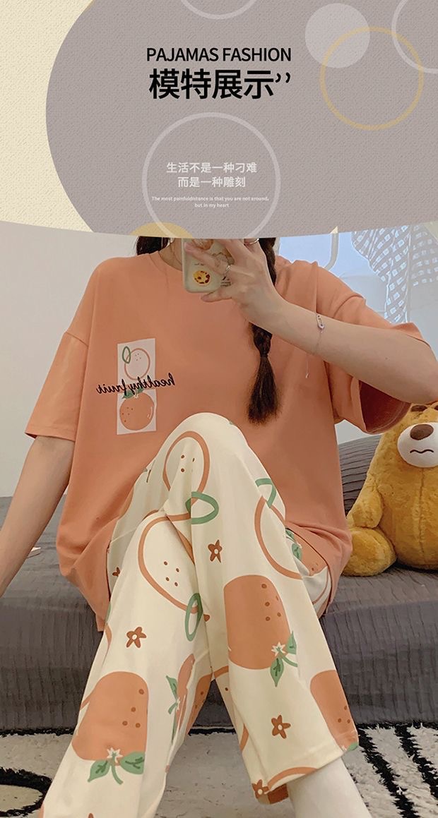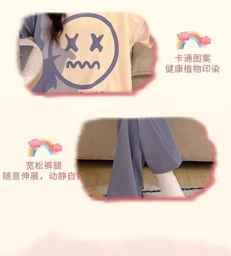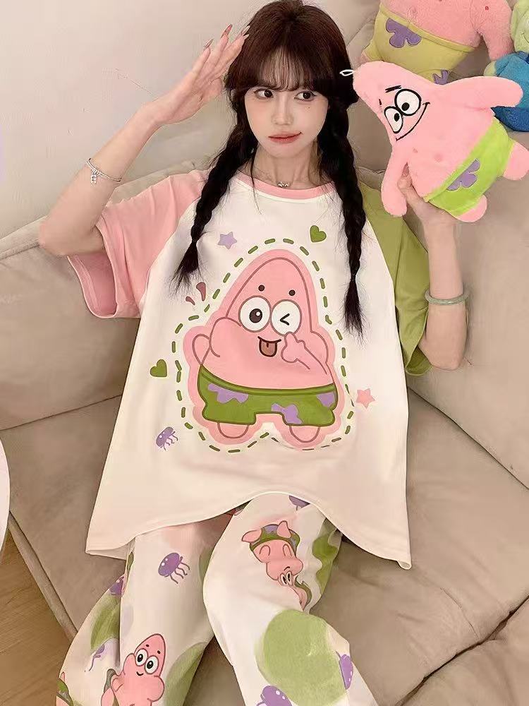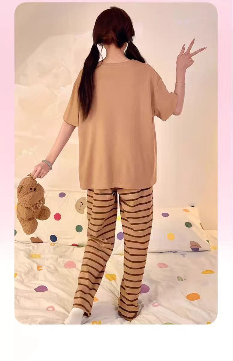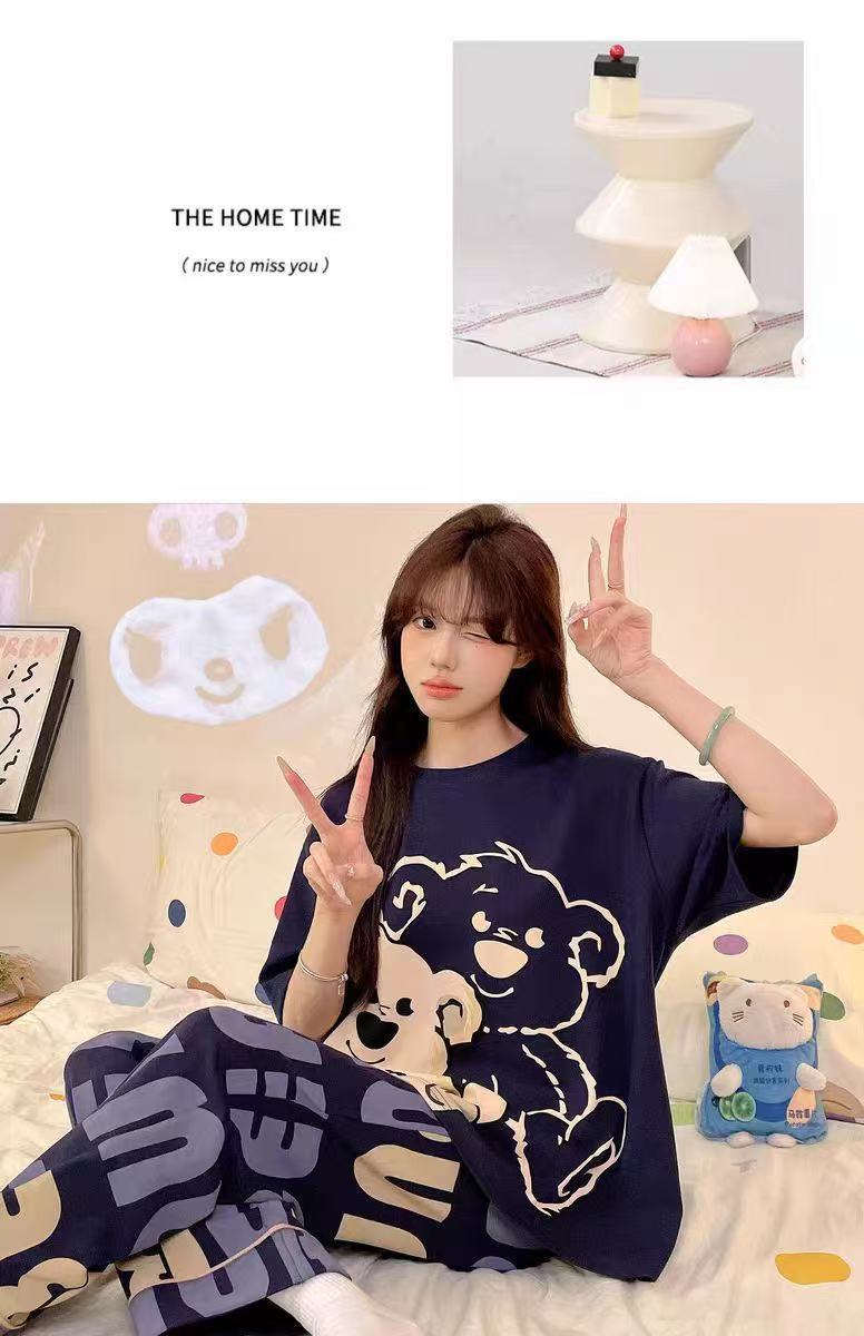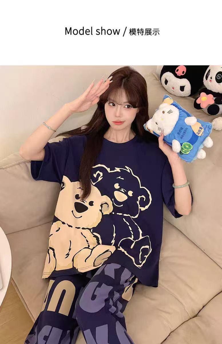 여성을위한 잠옷 여름 2025 새로운 반팔 바지 얇은 달콤한 귀여운 만화 느슨한 캐주얼 홈웨어 세트스토어 가기