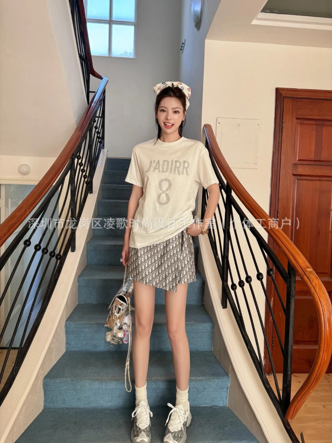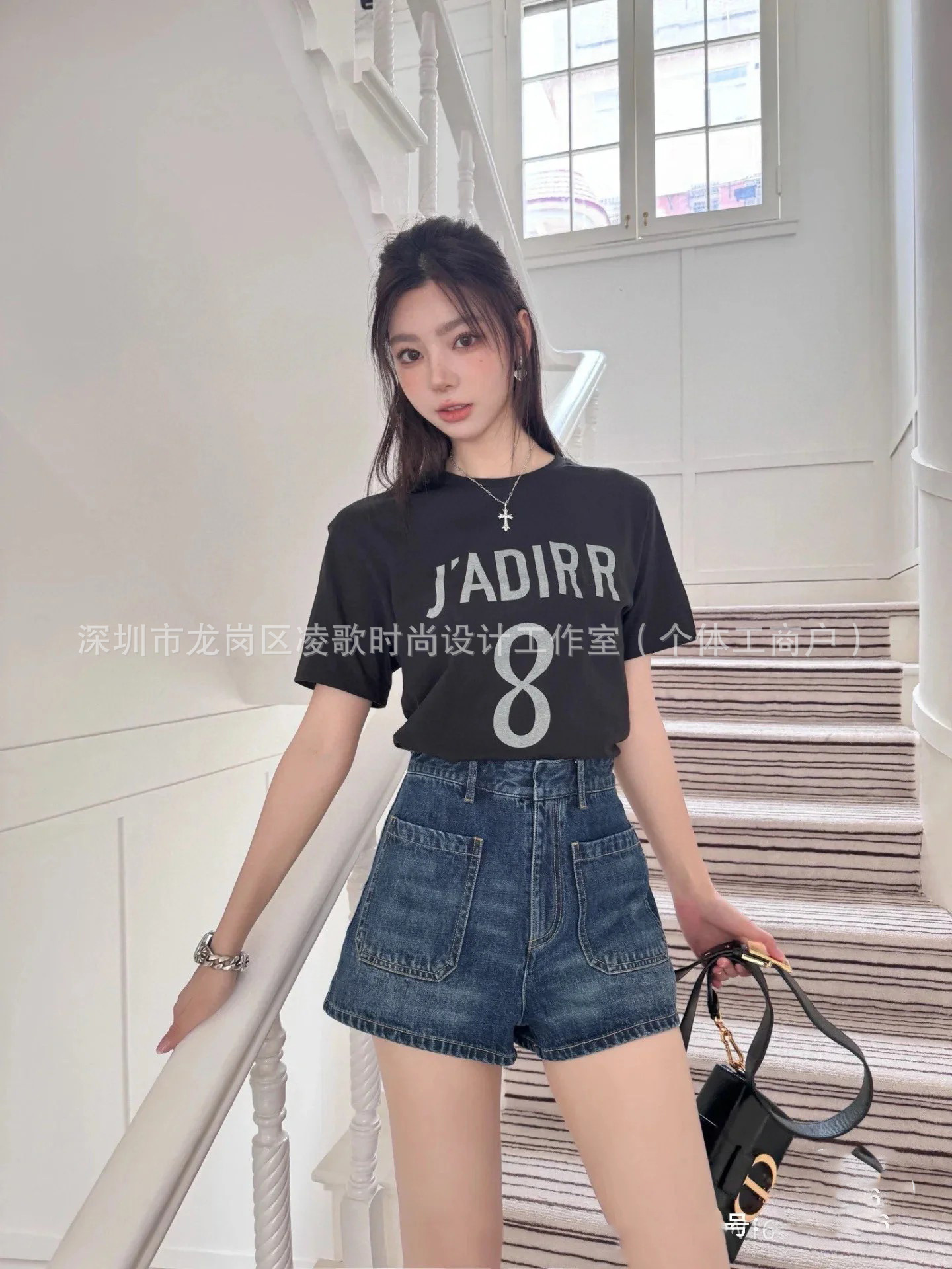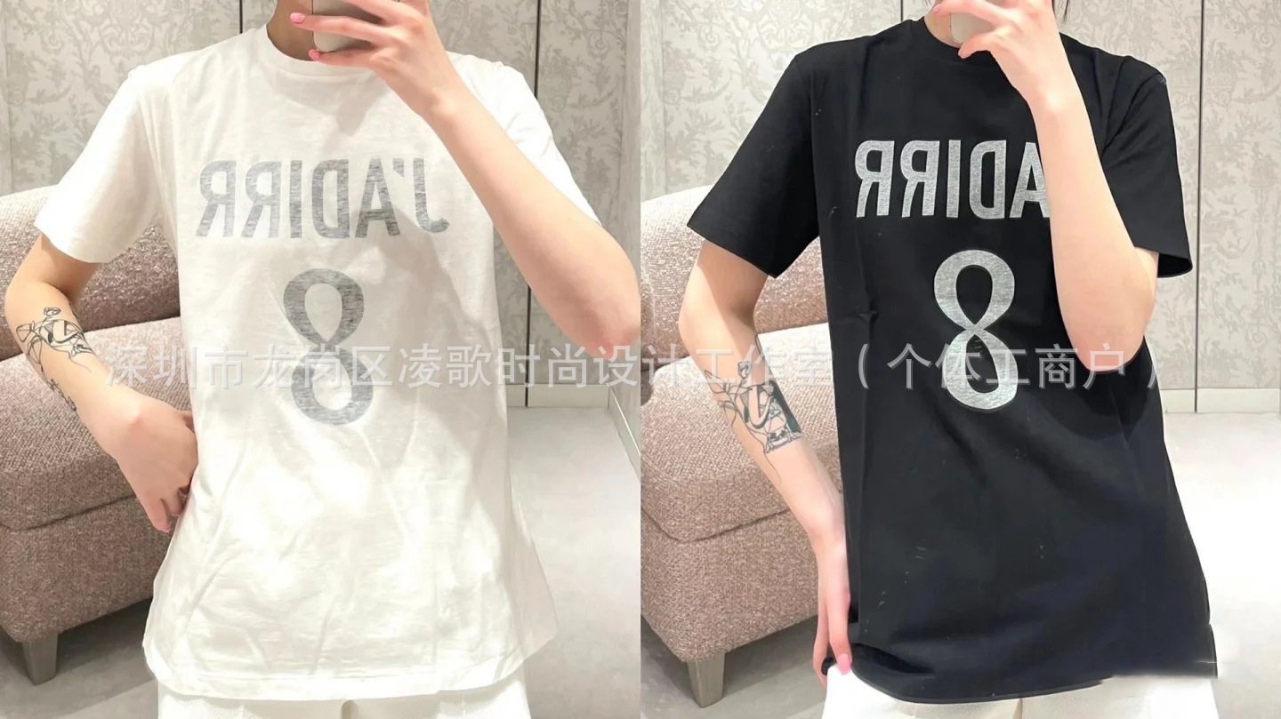 LENGE Nanyou DR25 여름 디지털 8자 리버스 프린트 라운드 넥 반팔 티셔츠 여성용 탑 다재다능하고 트렌디함