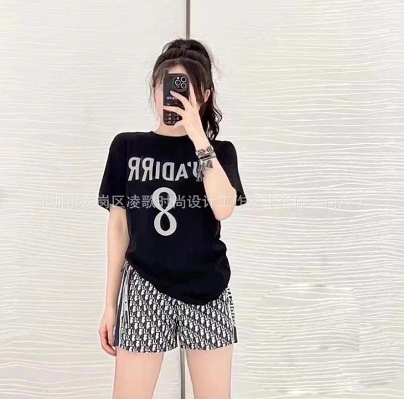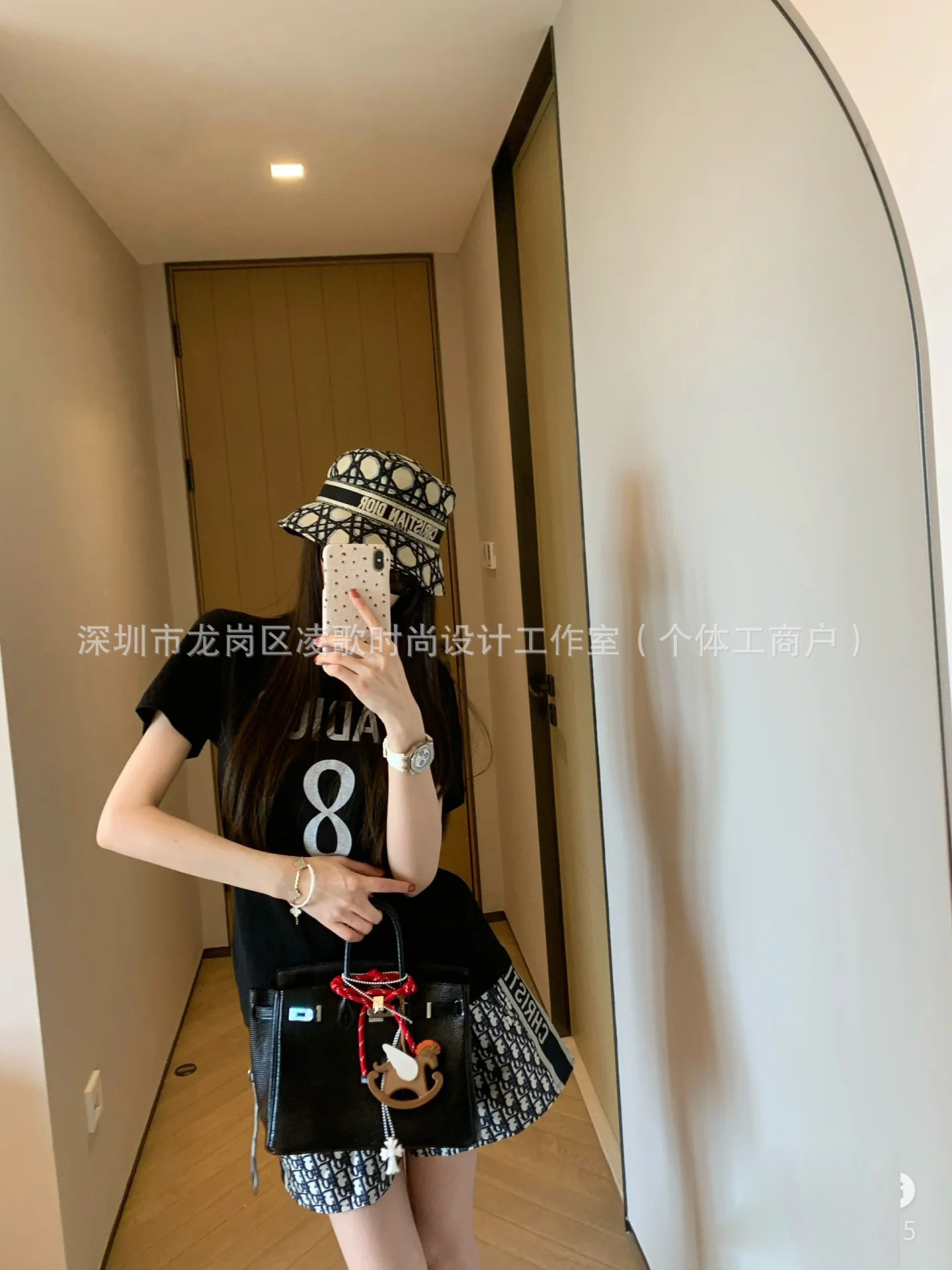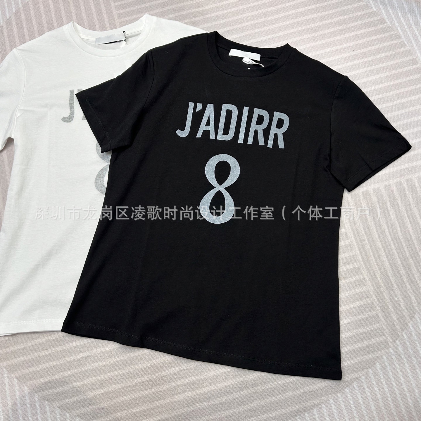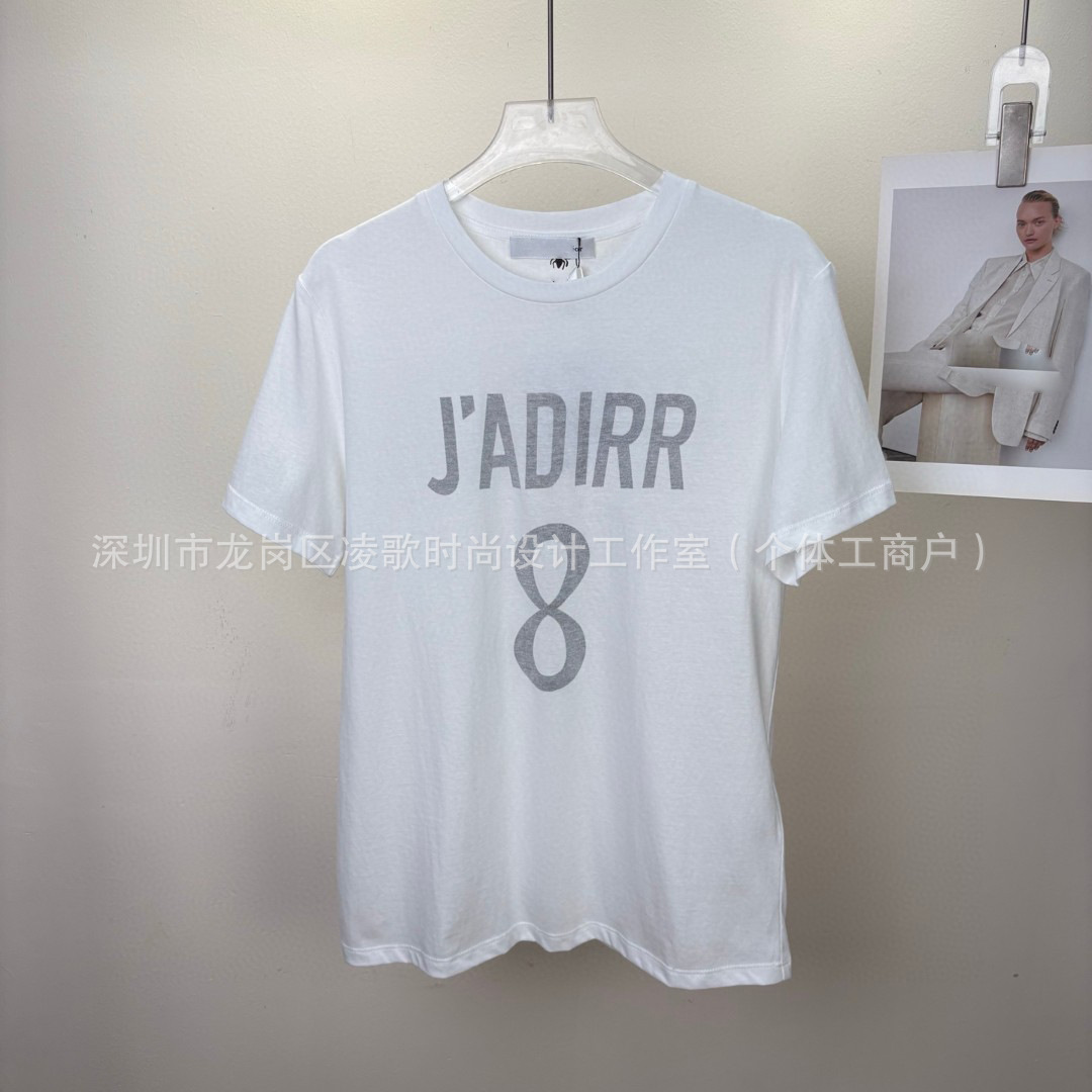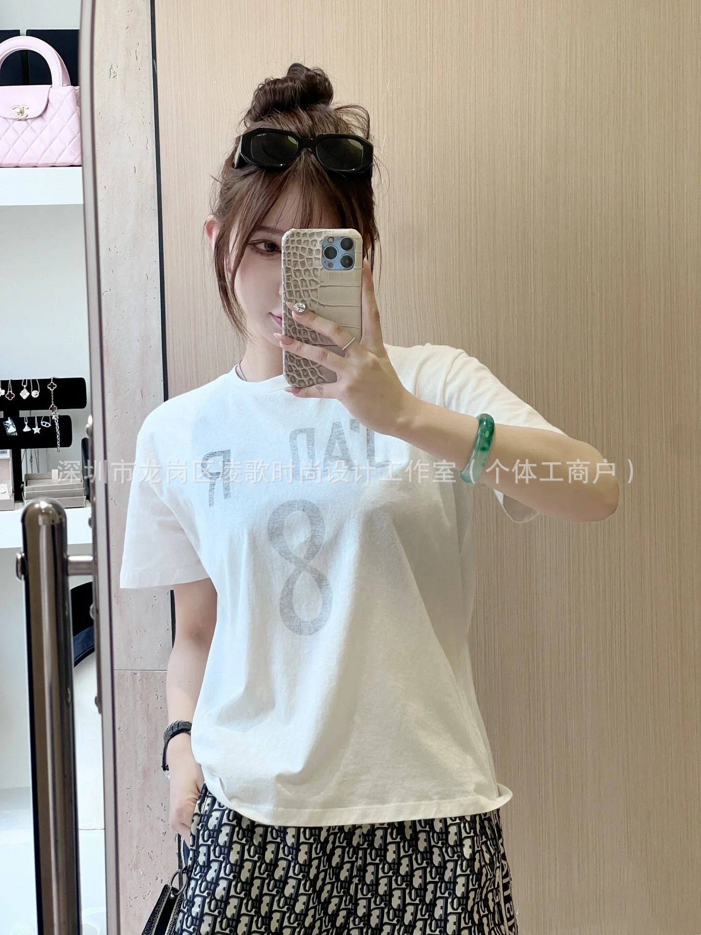 LENGE Nanyou DR25 여름 디지털 8자 리버스 프린트 라운드 넥 반팔 티셔츠 여성용 탑 다재다능하고 트렌디함스토어 가기