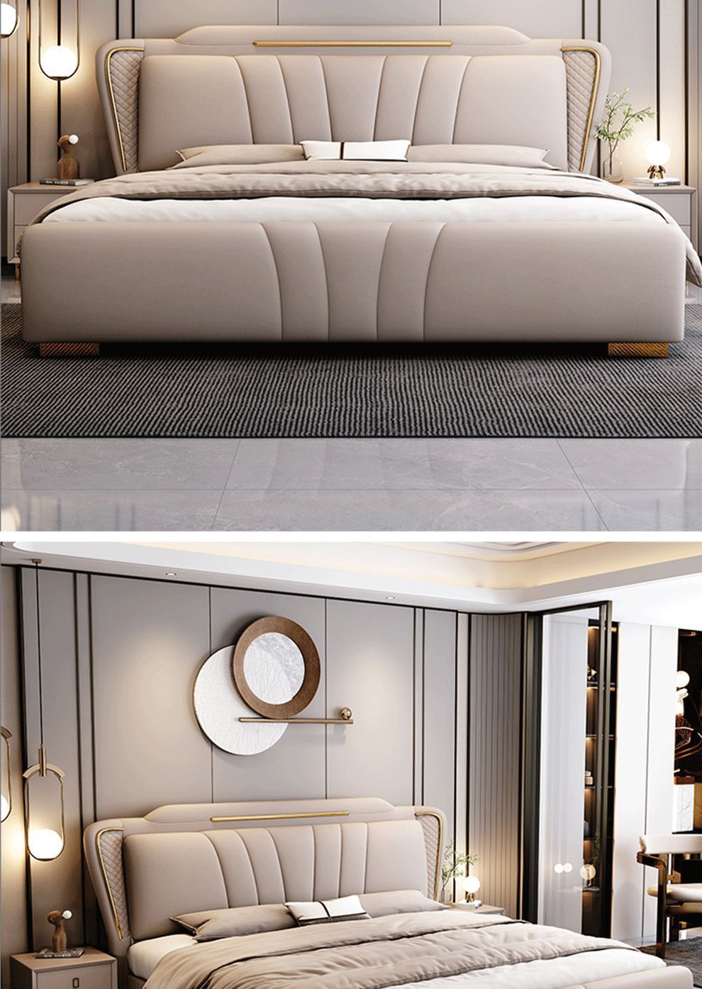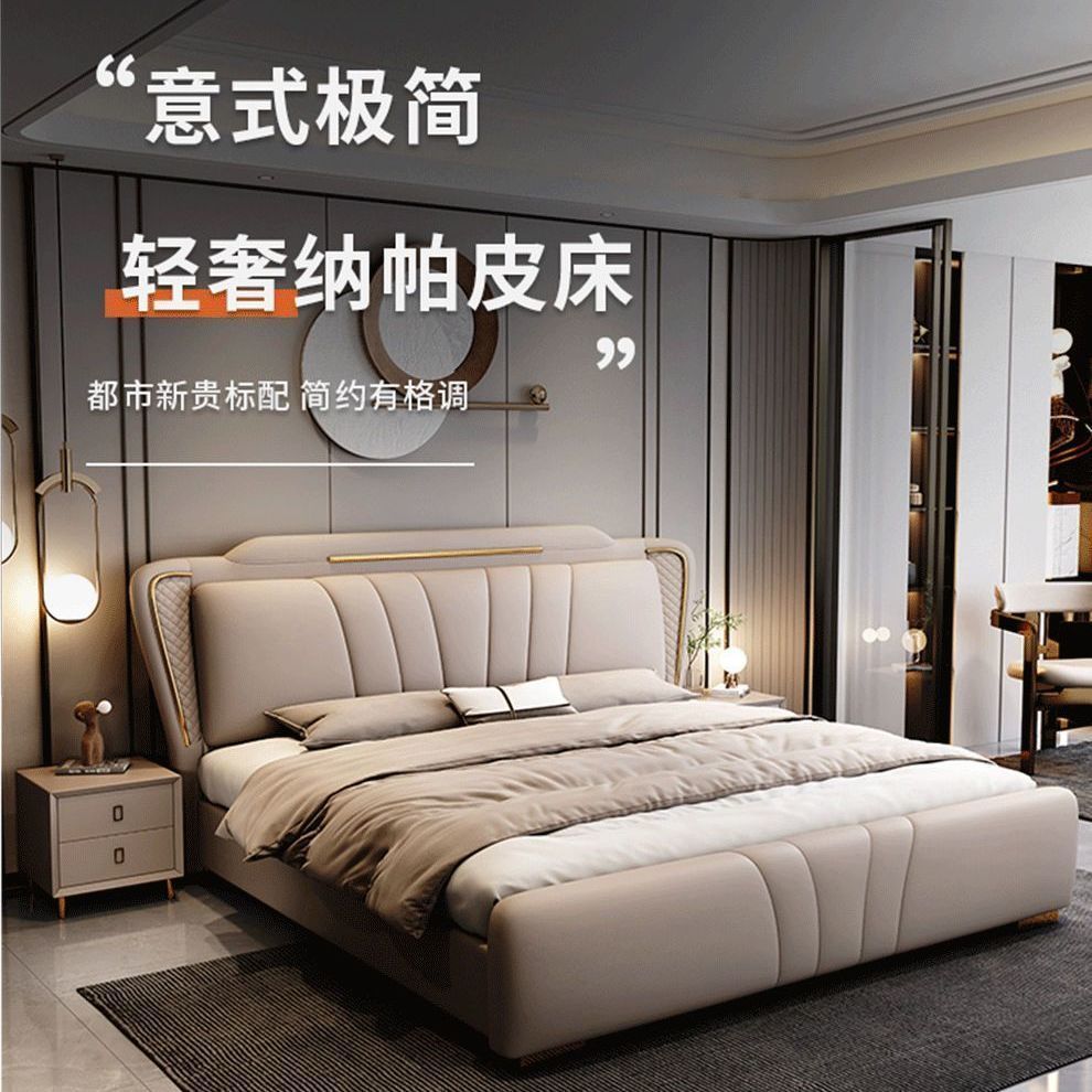 현대적인 미니멀리스트 가죽 침대 성인 유럽 더블 침대 1.8x 2m 마스터 침실 1.5m 인기 웨딩 침대 가죽 아트 침대