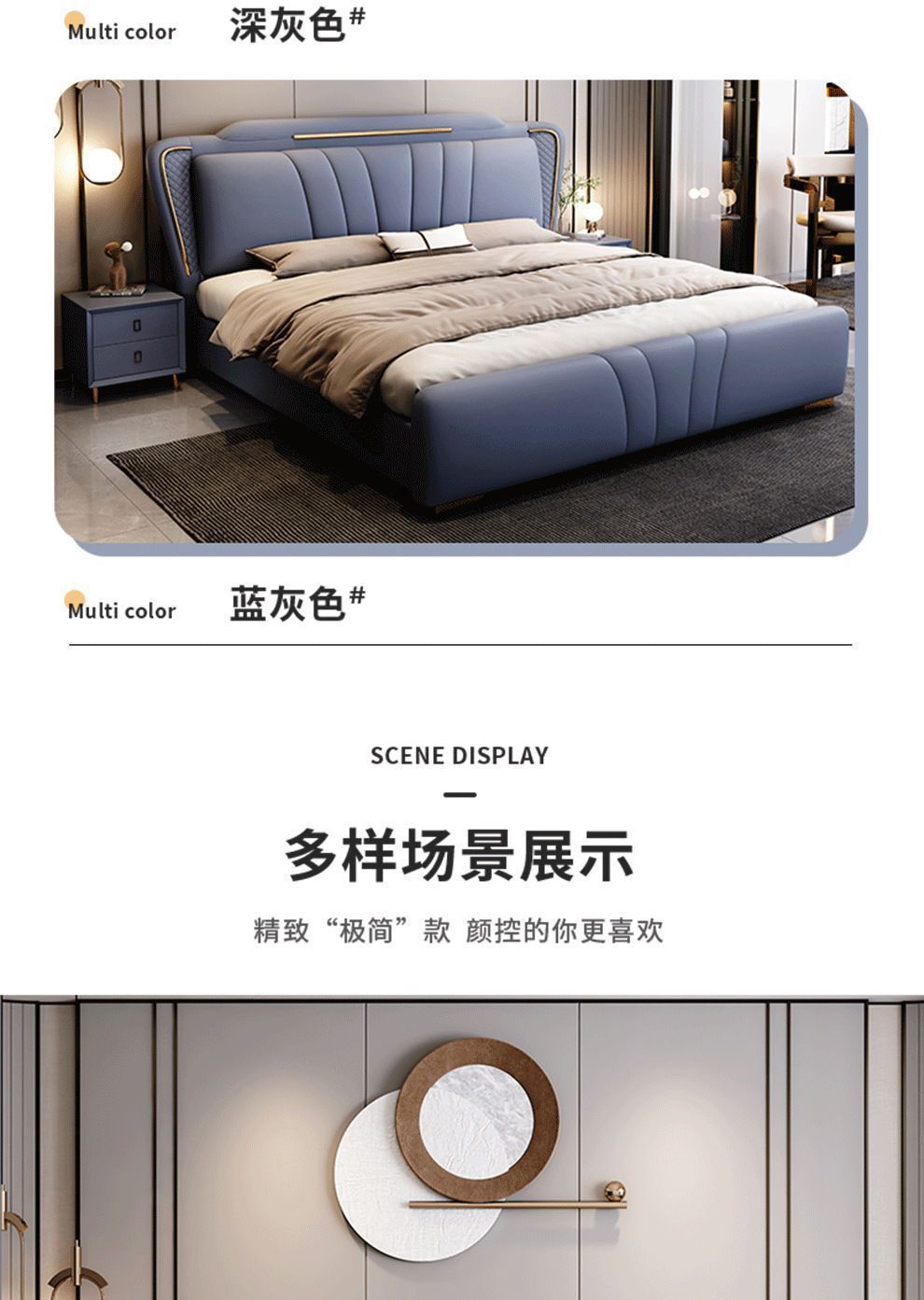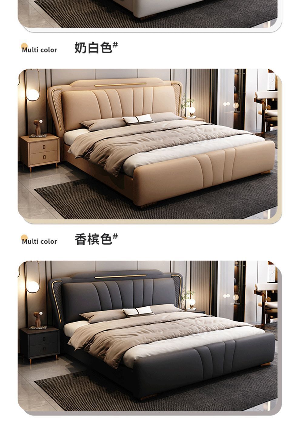 현대적인 미니멀리스트 가죽 침대 성인 유럽 더블 침대 1.8x 2m 마스터 침실 1.5m 인기 웨딩 침대 가죽 아트 침대스토어 가기