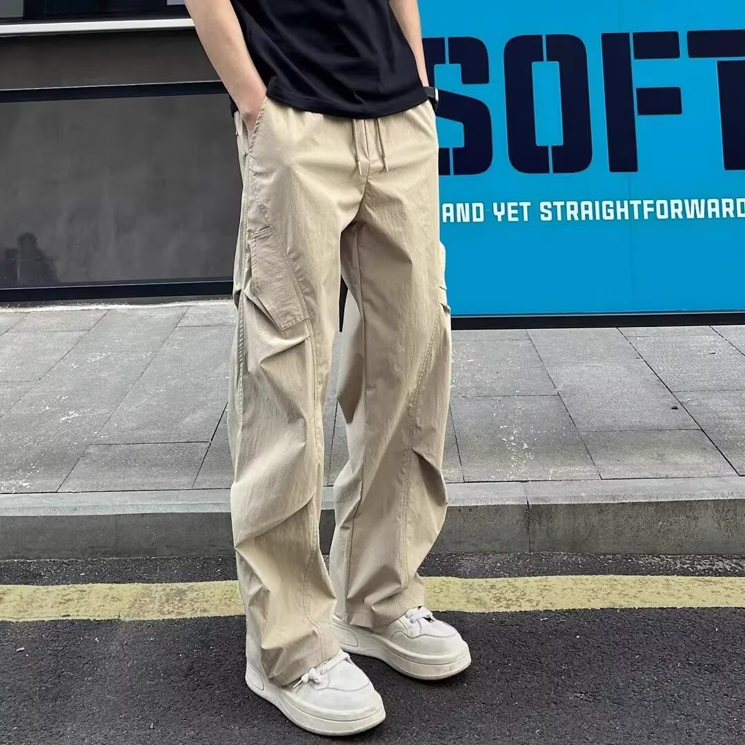 아메리칸 소프트 쉘 남성용 여름 얇은 주름 속건성 공수 작업복 바지 스트레이트 스포츠 캐주얼 바지