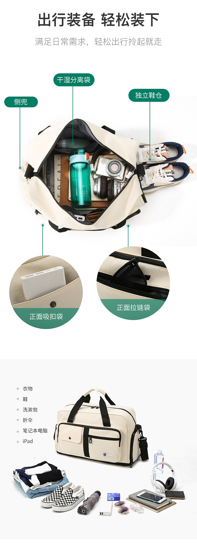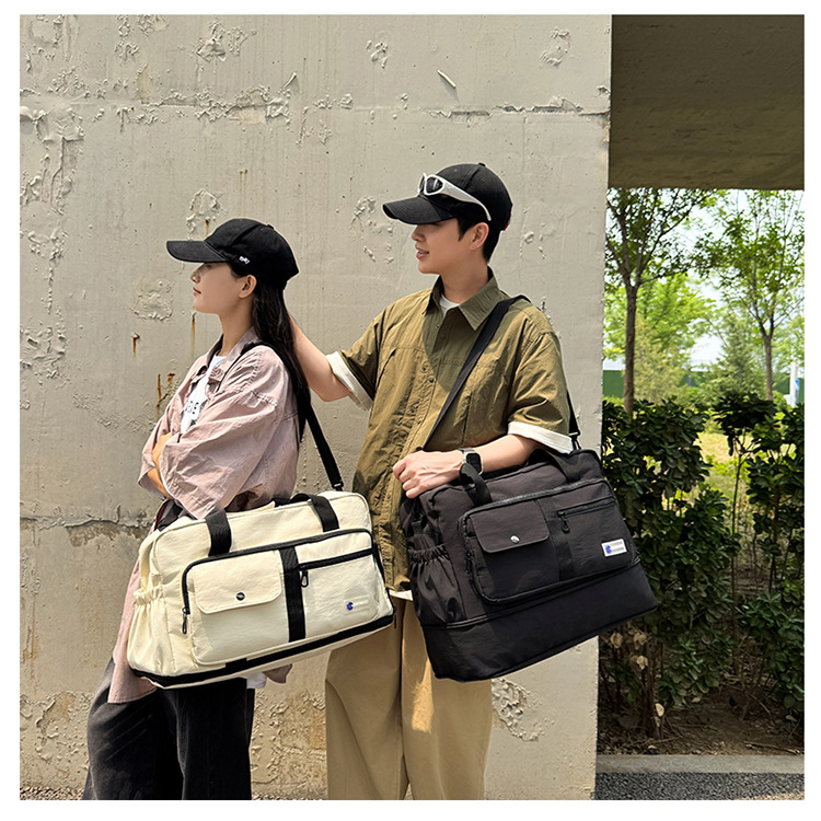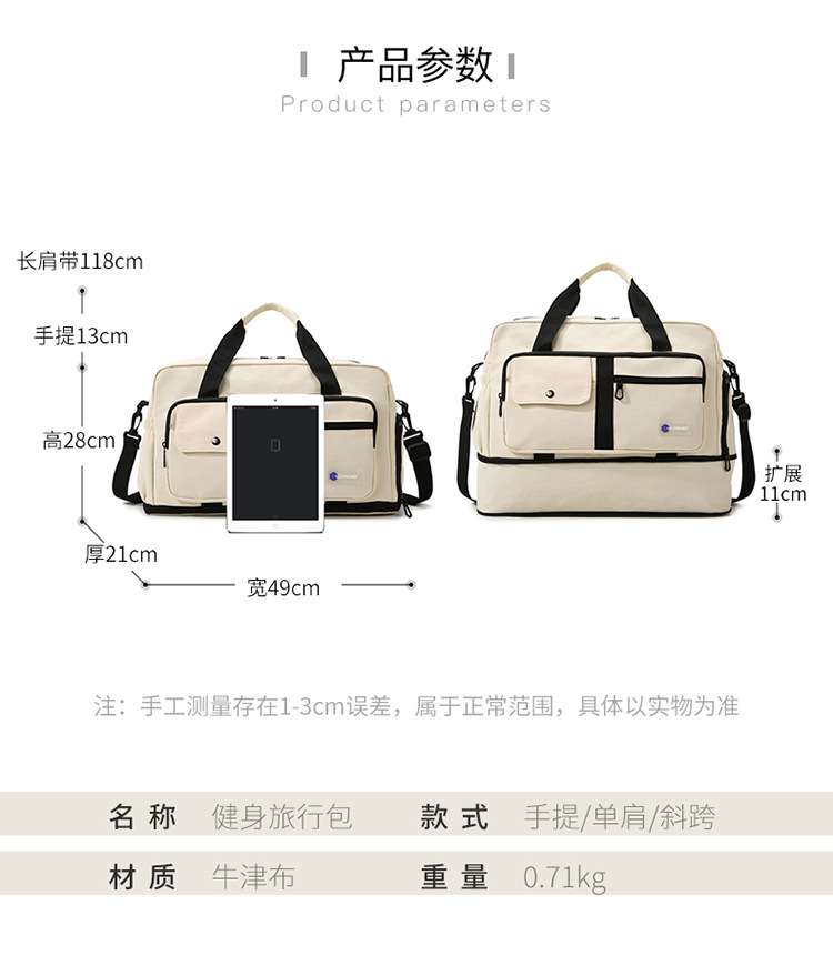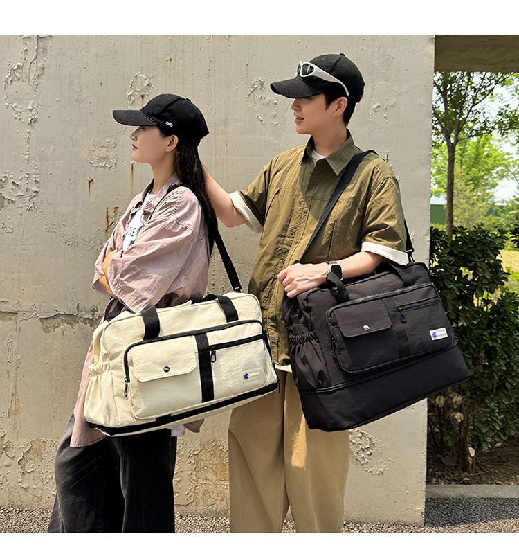 접이식 휴대용 여행 가방, 가볍고 다기능, 더블백 스포츠 피트니스 가방, 건식 및 습식 분리 커버 트롤리 수하물 가방