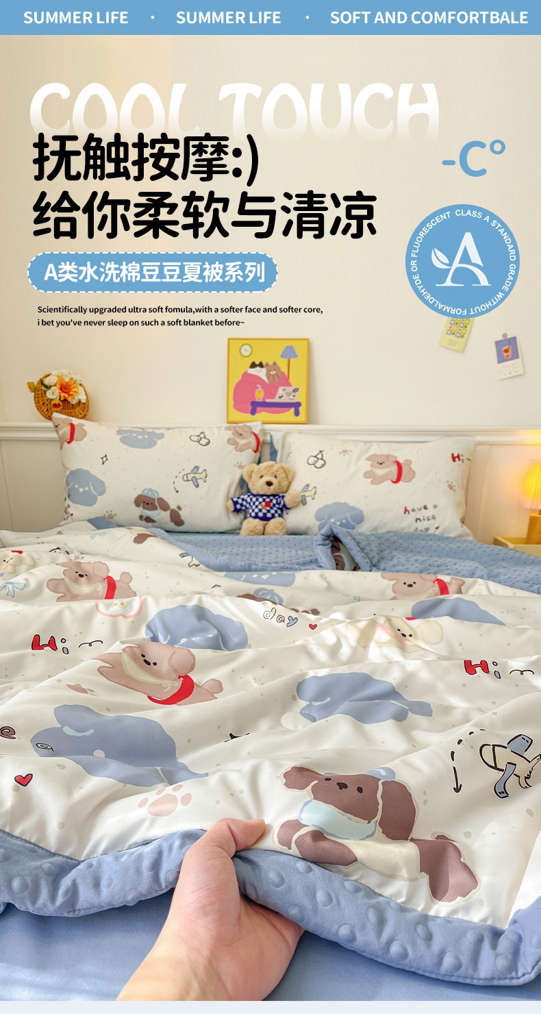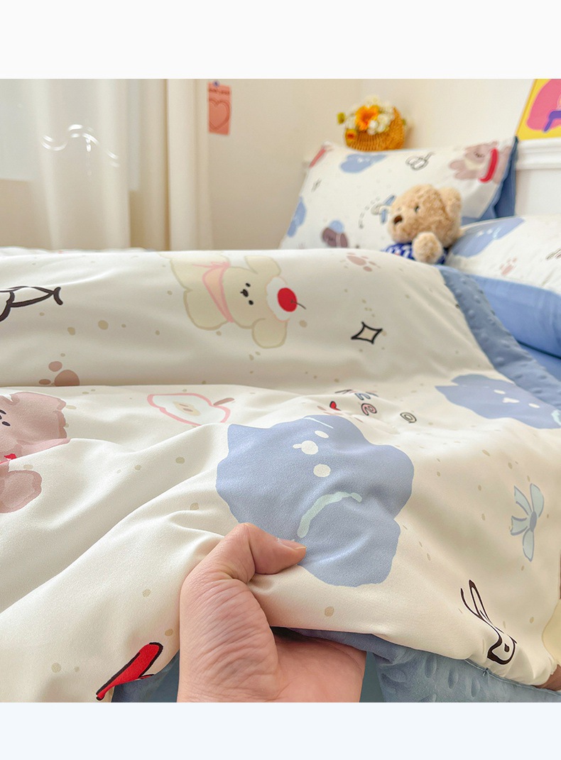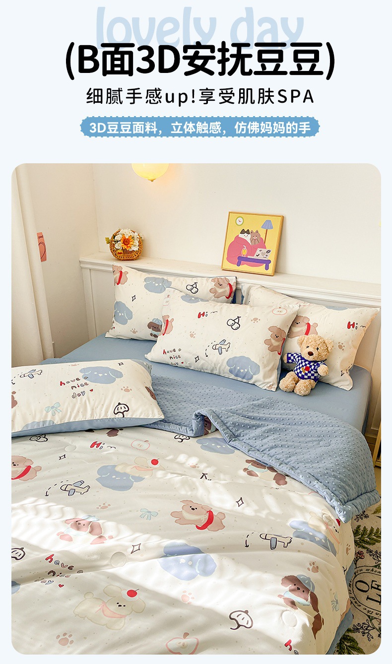 클래스 A 워시 코튼 콩 이불 4피스 어린이 유치원 만화 얇은 이불 기계 세탁 가능한 3피스 여름 이불 도매