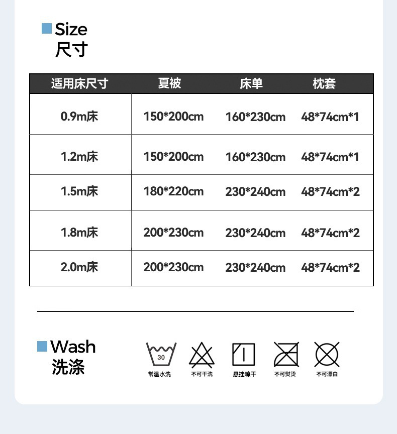 • 여름 이불 4종 세트 [180x200cm 여름 이불 + 230x240cm 침대 시트 + 베갯잇 한 쌍]