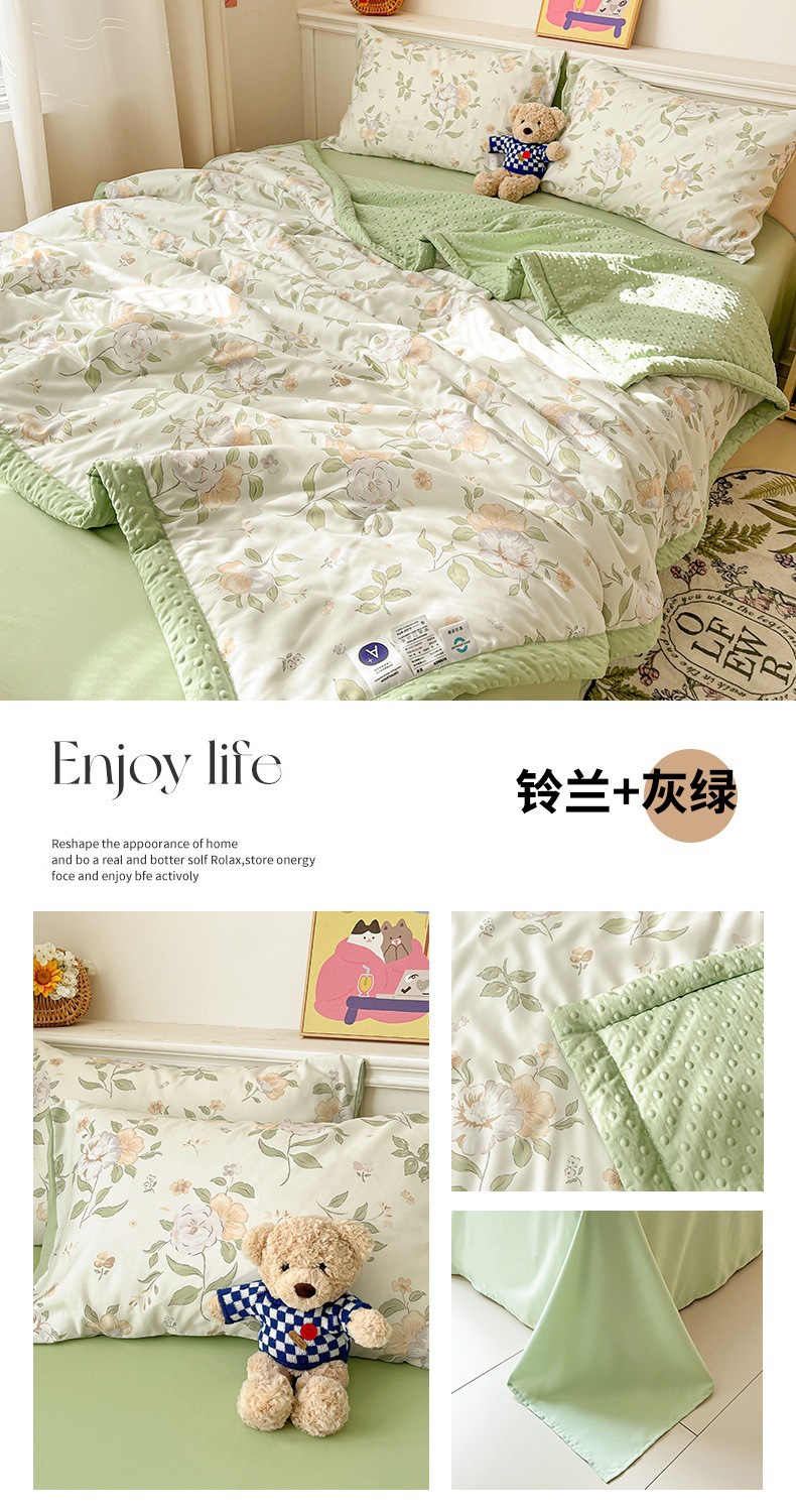 • 여름 이불 4종 세트 [150x200cm 여름 이불 + 230x240cm 침대 시트 + 베갯잇 한 쌍]