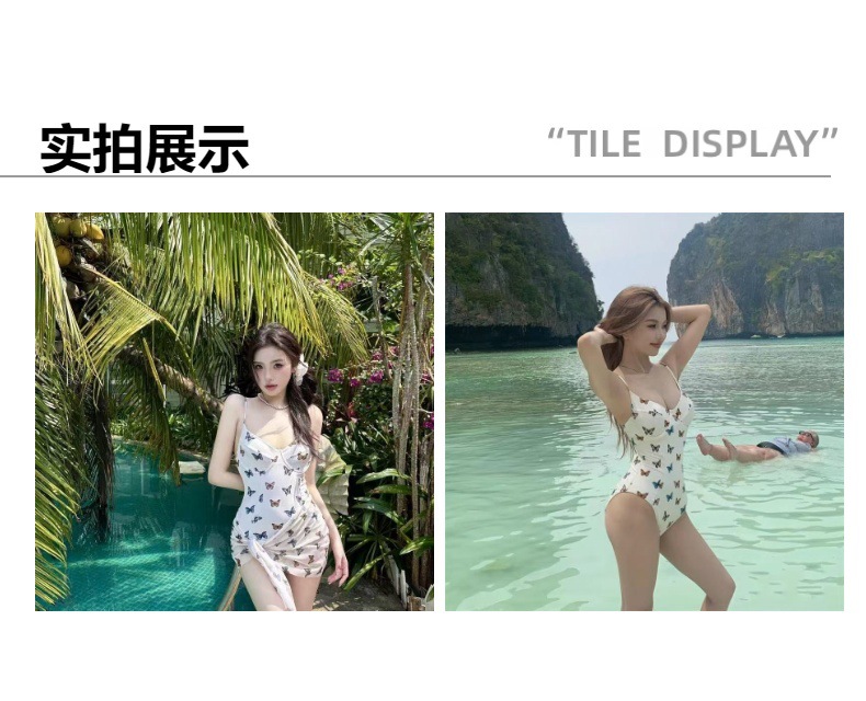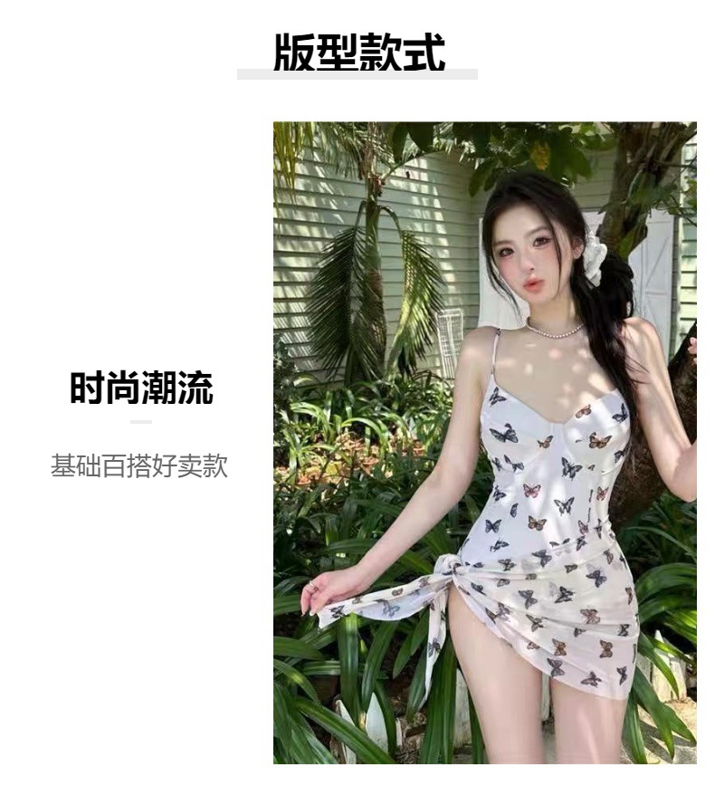 작은 나비가 순수한 욕망을 보여줍니다. 여름 원피스 수영복, 레인 플라워 커버 배, 꽃무늬 흰색 휴가 온천 해변 수영복스토어 가기
