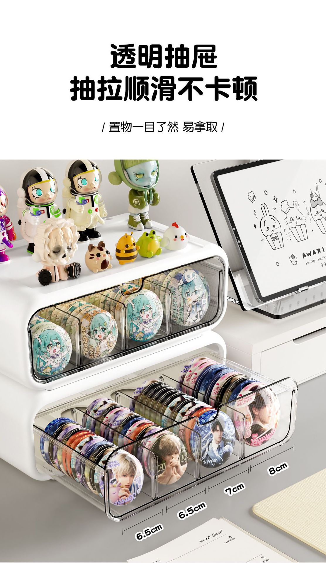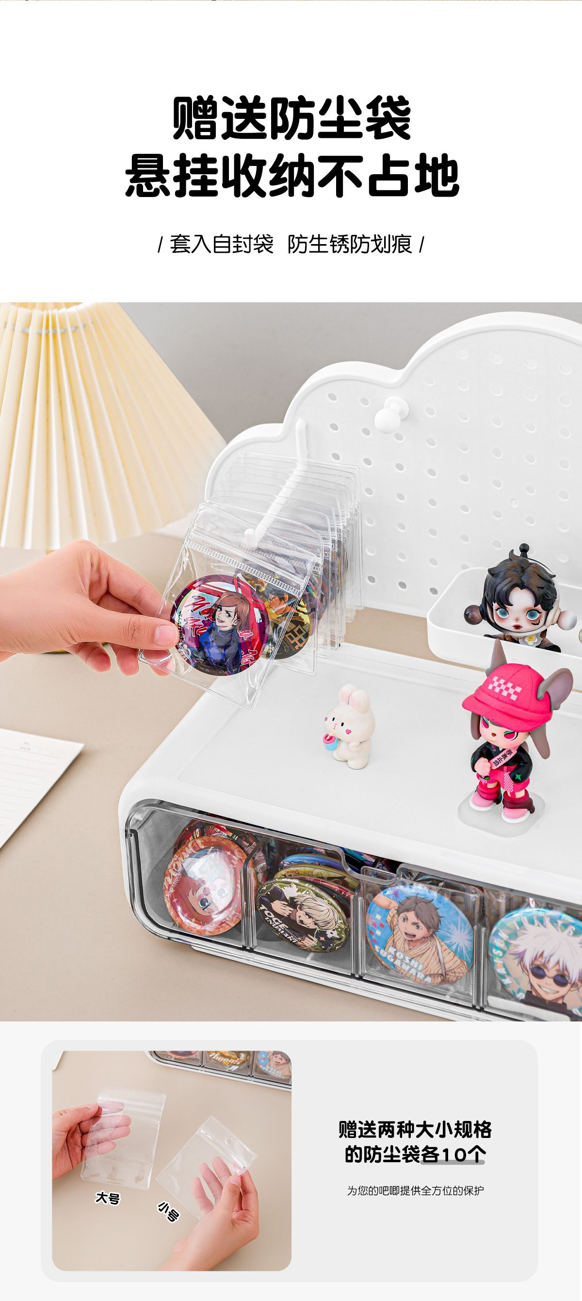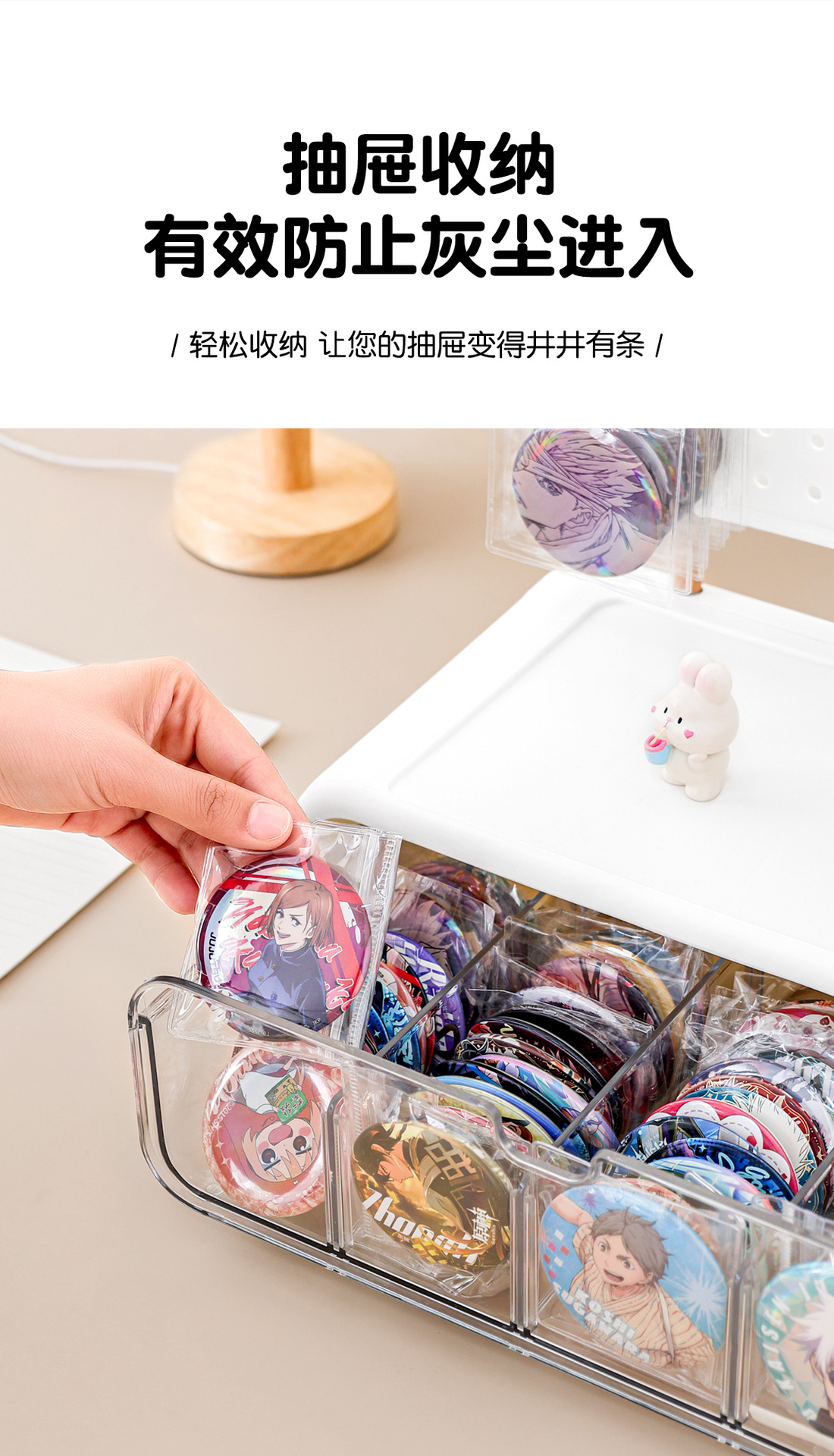 桌面吧唧收纳盒透明抽屉分格展示架背卡徽章动漫DIY洞洞板收纳架