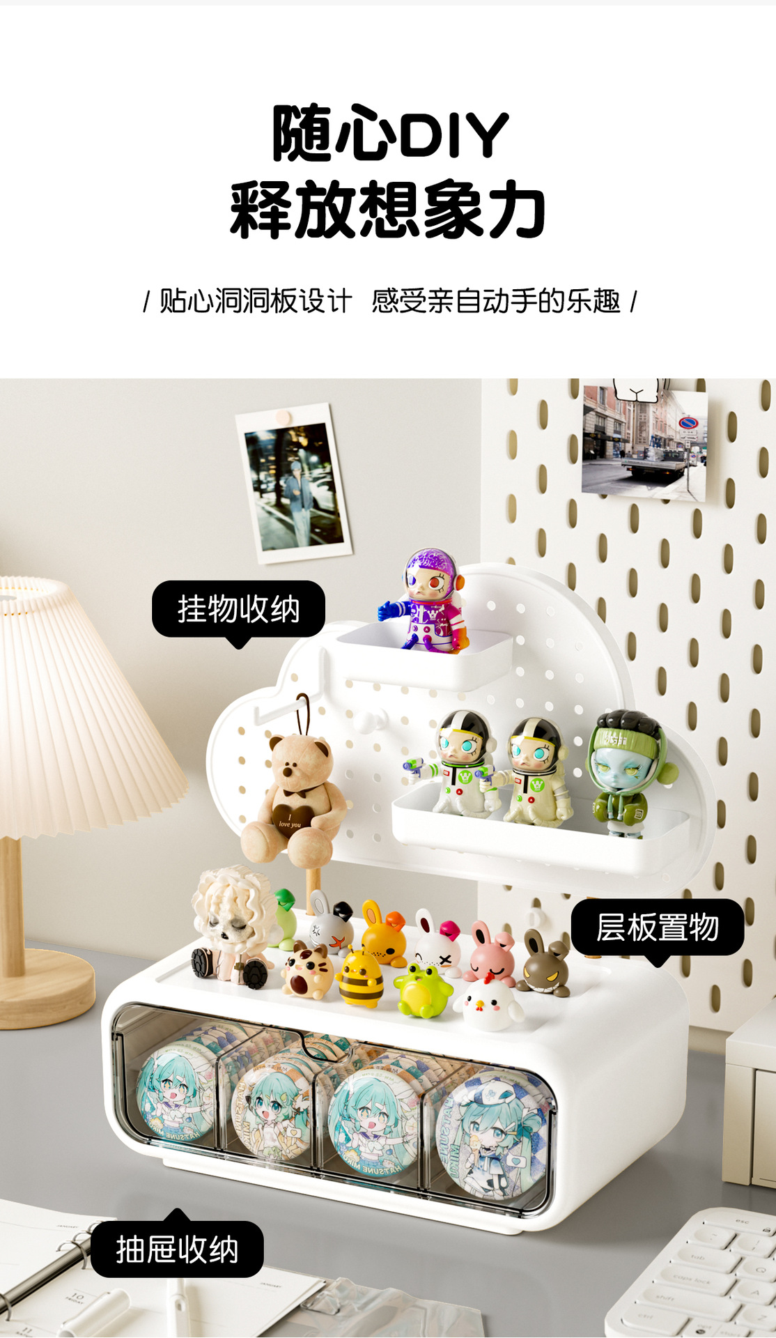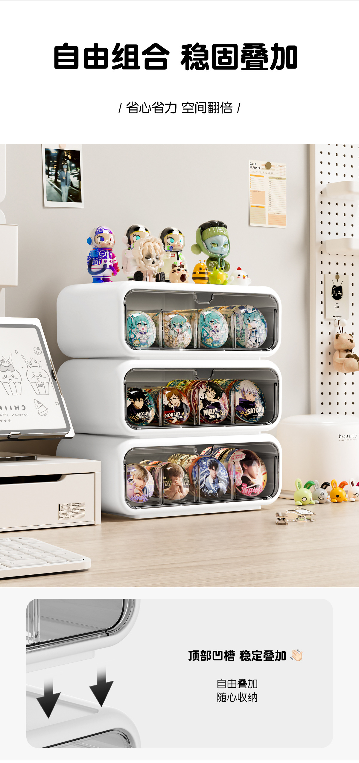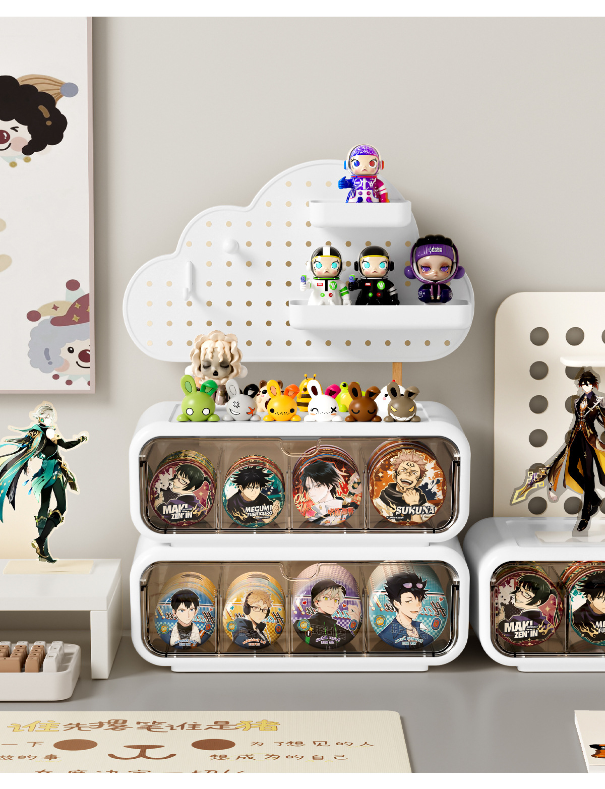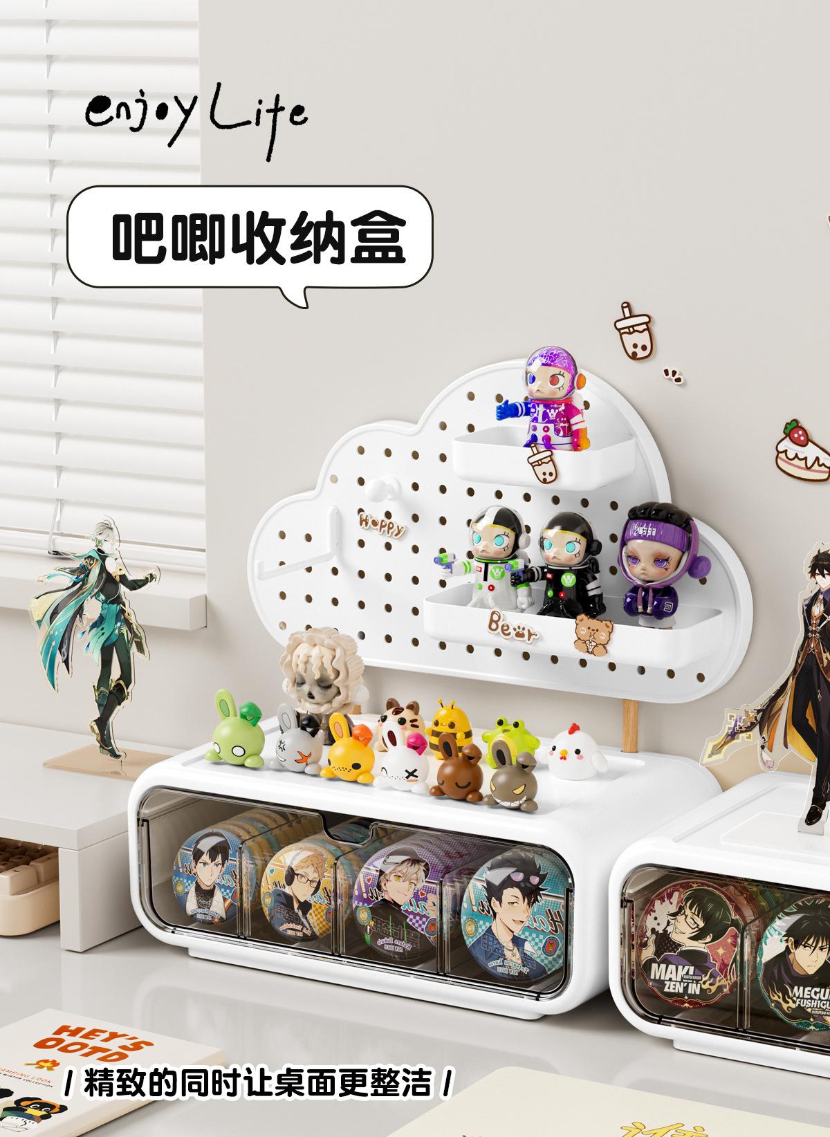 桌面吧唧收纳盒透明抽屉分格展示架背卡徽章动漫DIY洞洞板收纳架