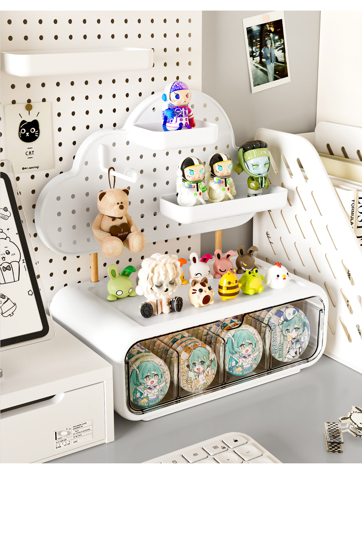 데스크탑 바 보관함 투명 서랍 디스플레이 스탠드 백 카드 배지 애니메이션 DIY 홀 보드 보관함