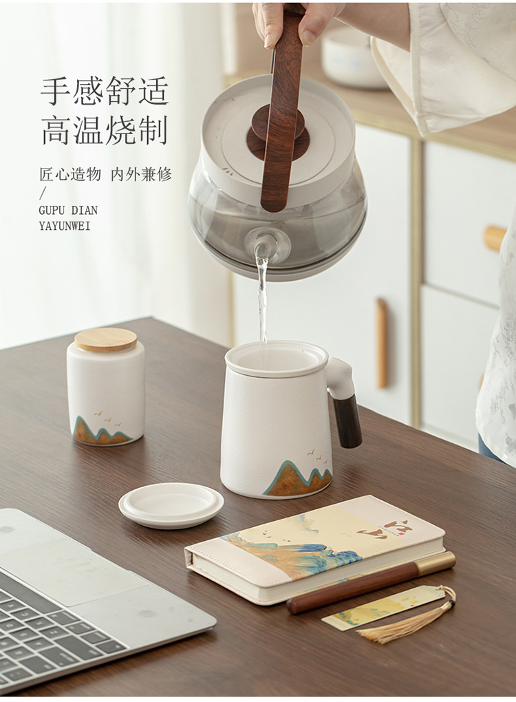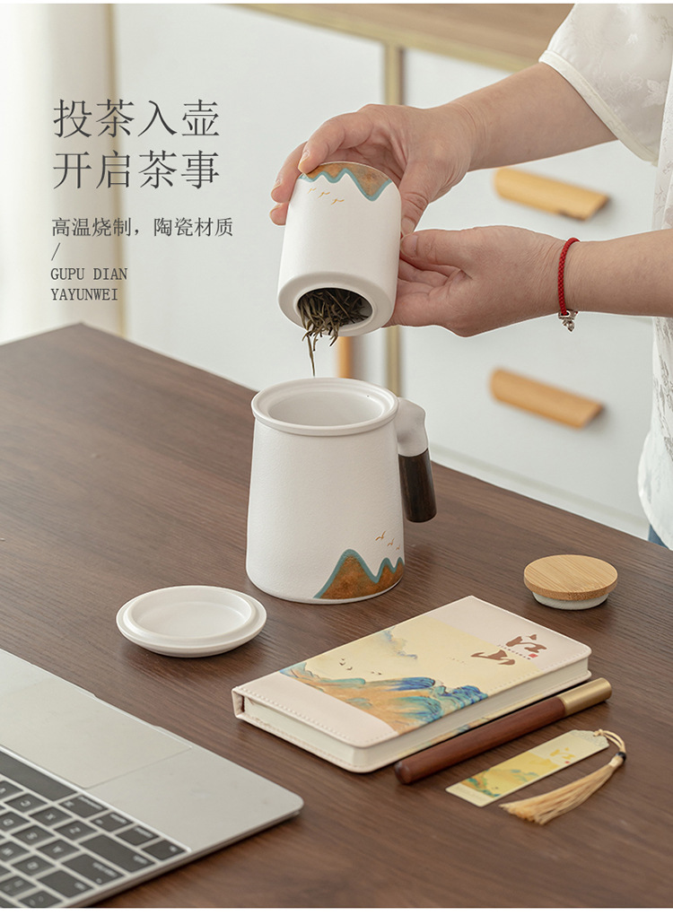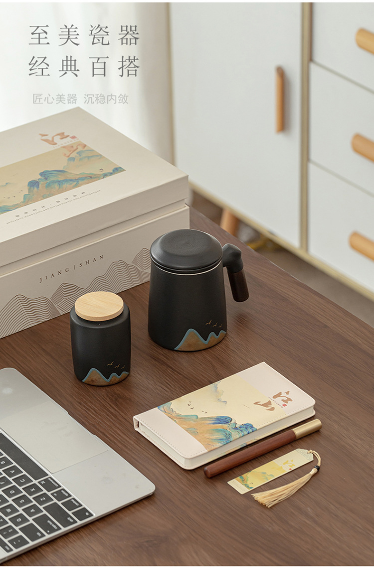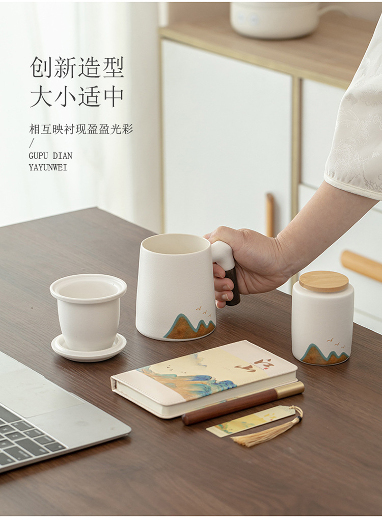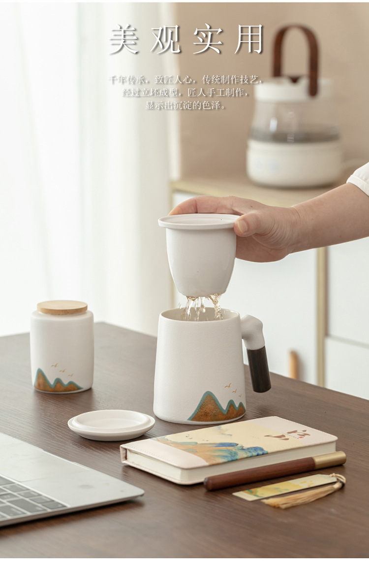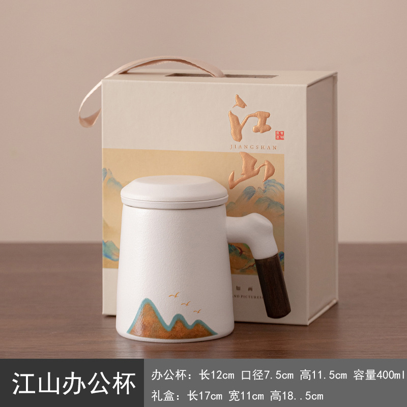 Jiangshan 개인 찻잔 사무실 홈 세라믹 워터 컵 필터 회사 비즈니스 기념품 이벤트 로고스토어 가기