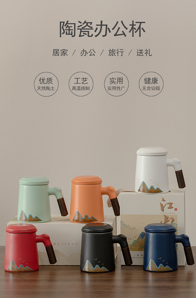Jiangshan 개인 찻잔 사무실 홈 세라믹 워터 컵 필터 회사 비즈니스 기념품 이벤트 로고