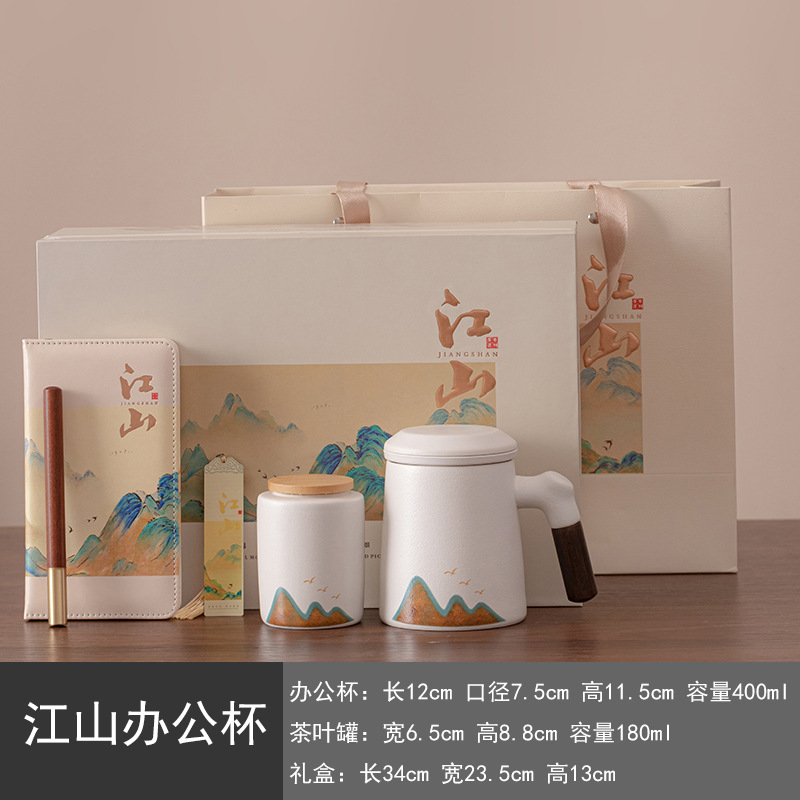 • 23-장산 사무실 컵 선물 상자 세트 (펜 + 책갈피 + 노트) 시안