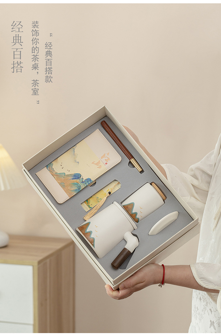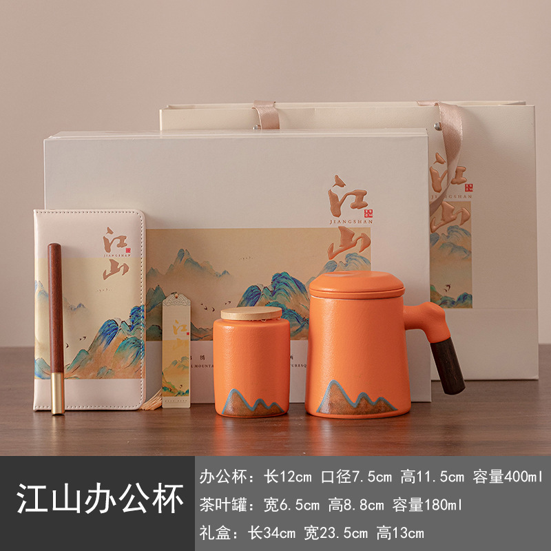 • 24-장산 사무실 컵 선물 상자 세트 (펜 + 책갈피 + 노트) 오렌지