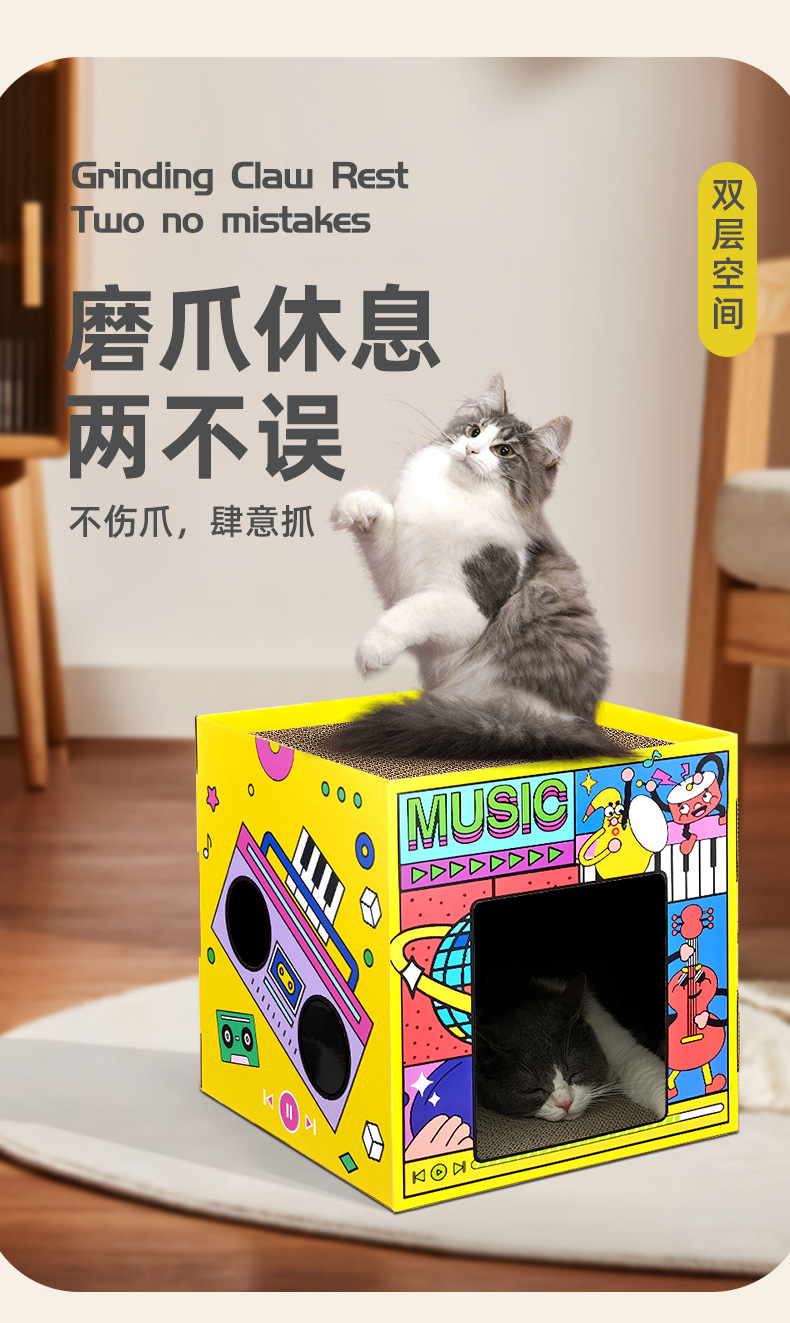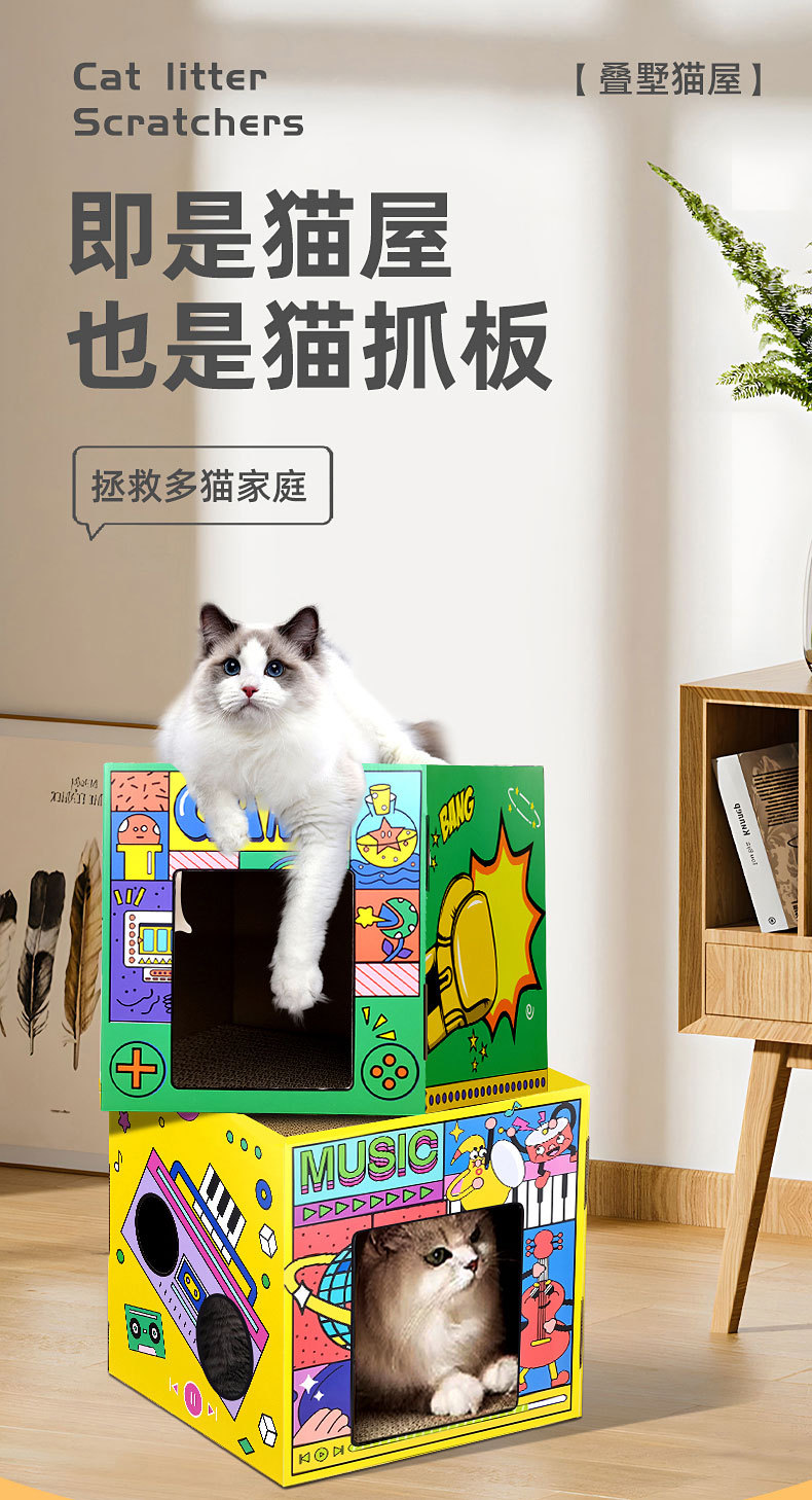 고양이 스크래치 보드 조립 카톤 고양이 둥지 통합 인터넷 연예인 고양이 발톱 내마모성 이중층 분리형 다기능 고양이 상자 장난감스토어 가기