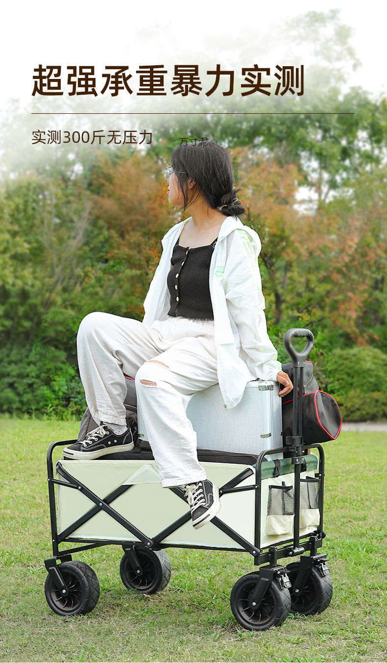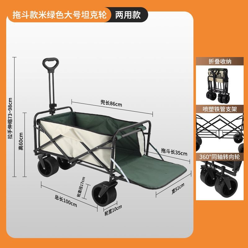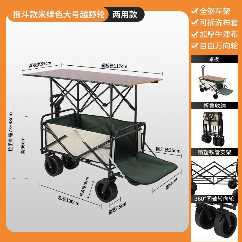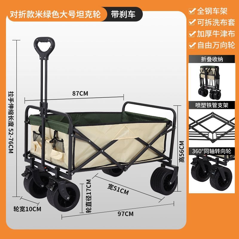 • 캠핑카 + 접이식 테이블 - 대형 오프로드 휠 브레이크 포함 (카키) --- 온라인 최고 인기 상품