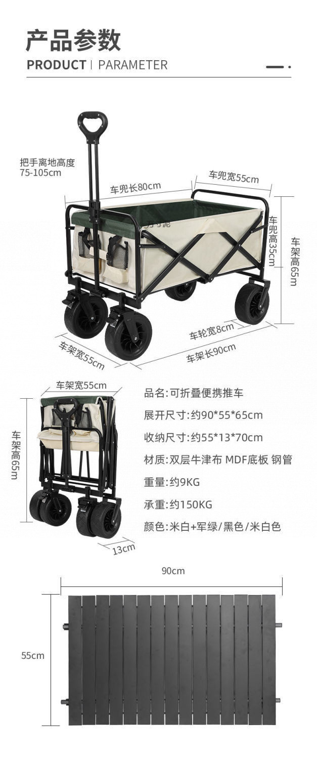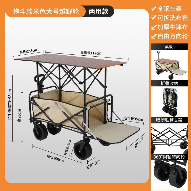 • 캠핑카 + 접이식 테이블 - 대형 오프로드 휠 브레이크 포함 (미색) --- 온라인 최고 인기 상품