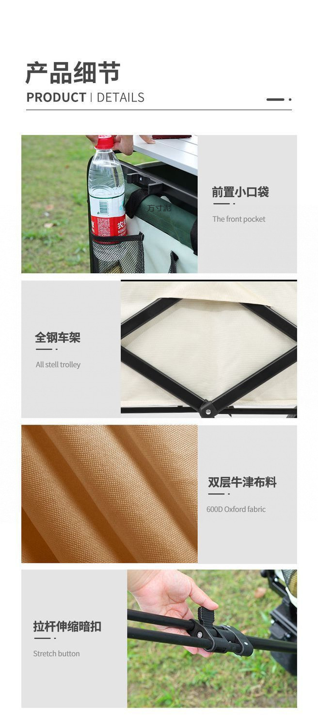 • 캠프카 + 높이 및 길이 확장 스톨 테이블 - 브레이크가 장착된 대형 오프로드 휠(카키색) --- 온라인에서 가장 많이 판매됨