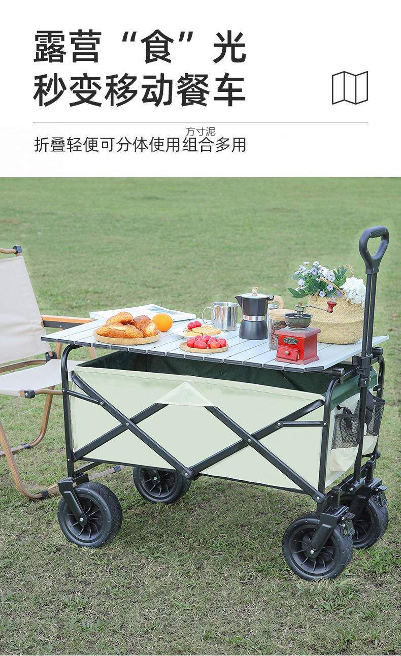 • 캠핑카 + 접이식 테이블 - 대형 좁은 바퀴 (카키) --- 온라인 최고 인기 상품