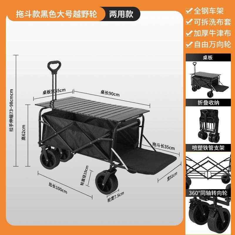 • 캠핑카 + 접이식 테이블 - 대형 오프로드 휠 브레이크 포함 (블랙) --- 온라인 최고 인기 상품