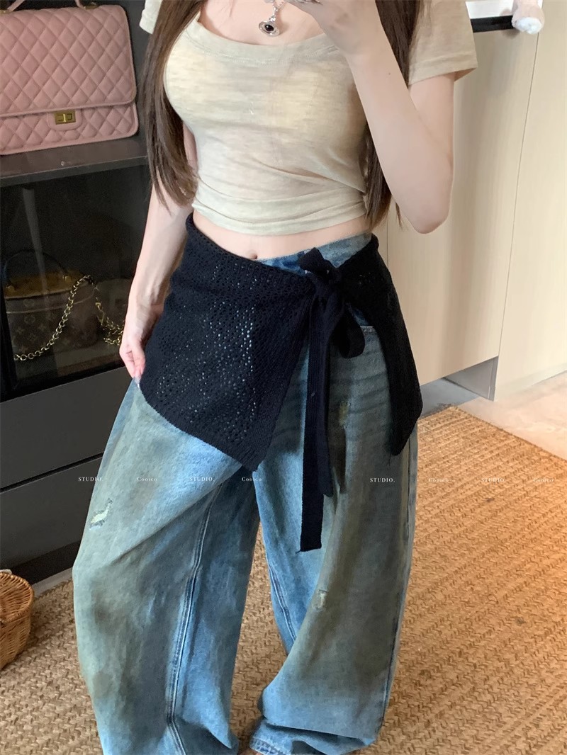 여름 레이어드 레이스 업 여성용 쿠미쿠미 디자인 중공 니트 스커트, 패셔너블하고 다재다능한 짧은 스커트스토어 가기