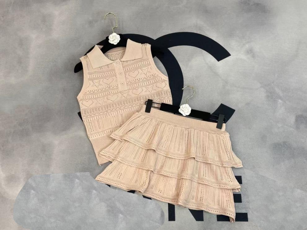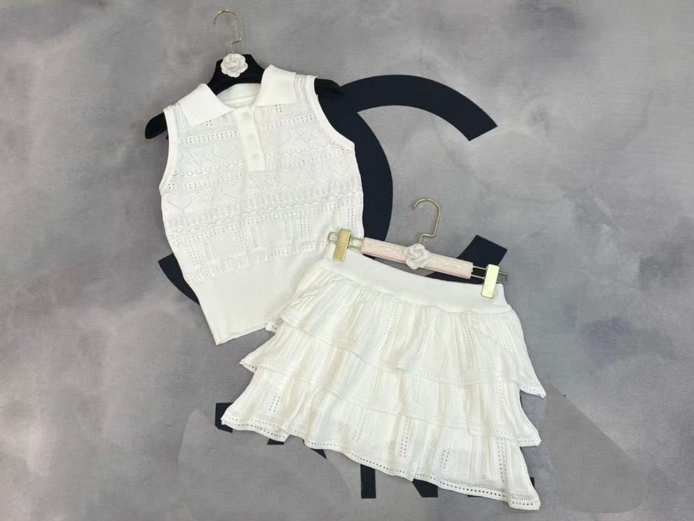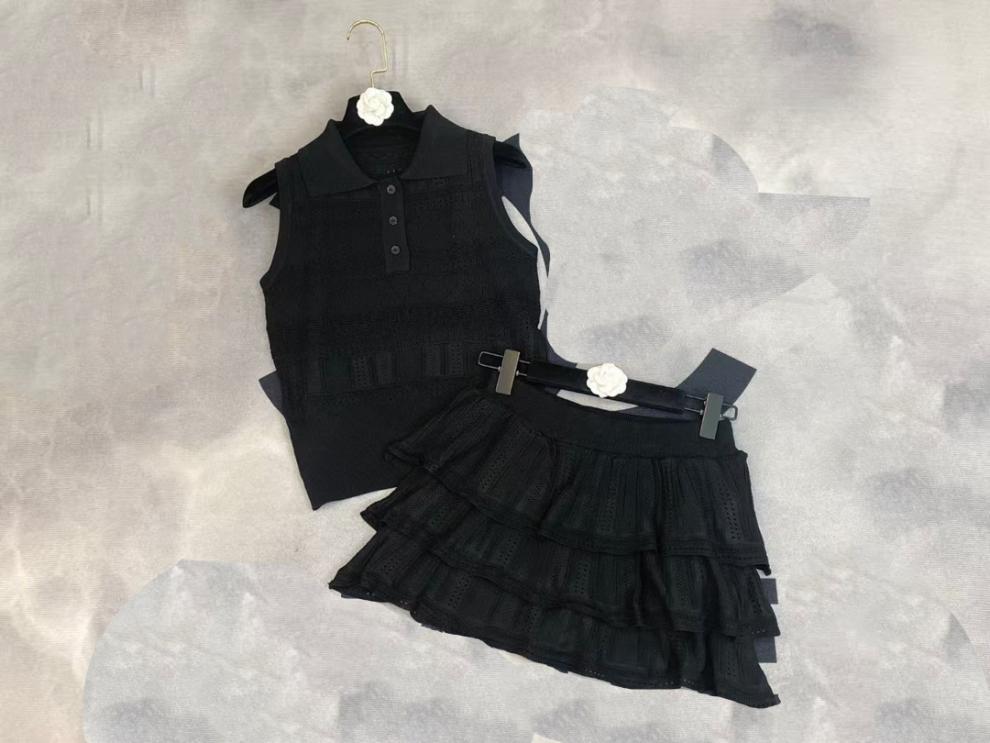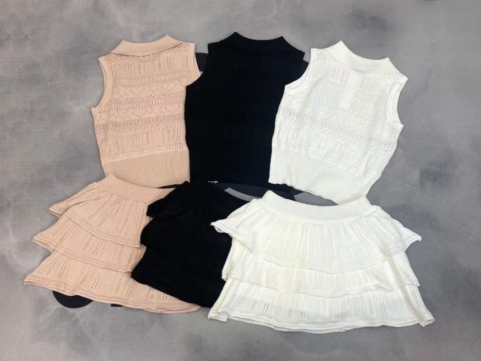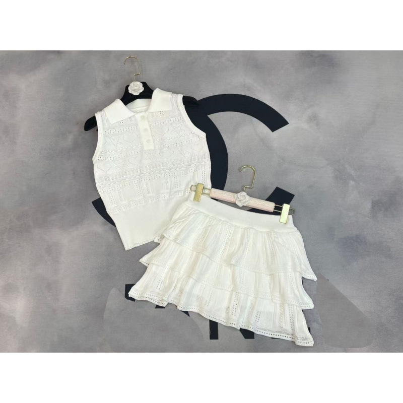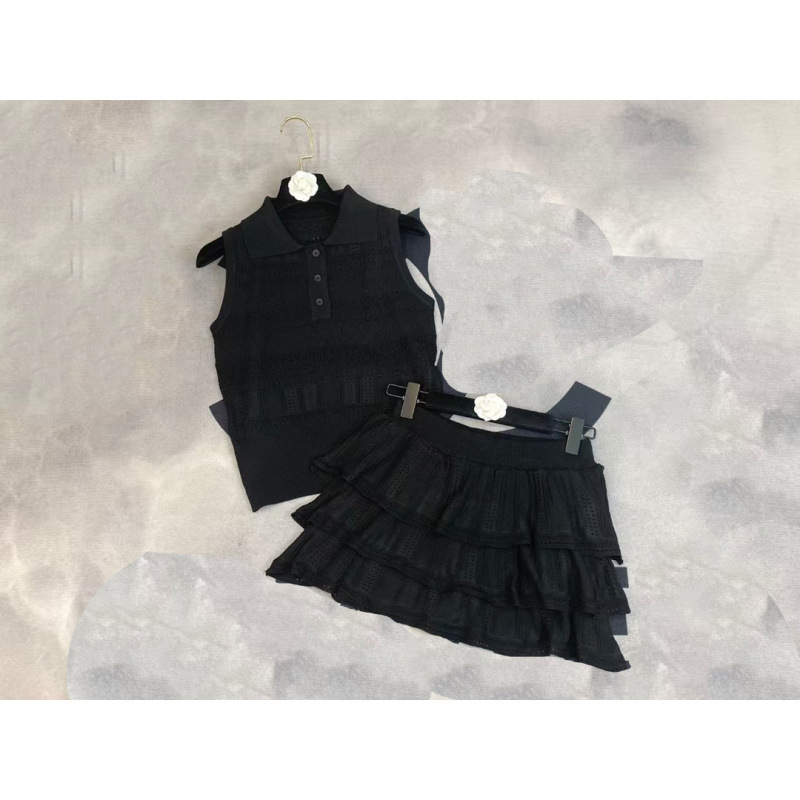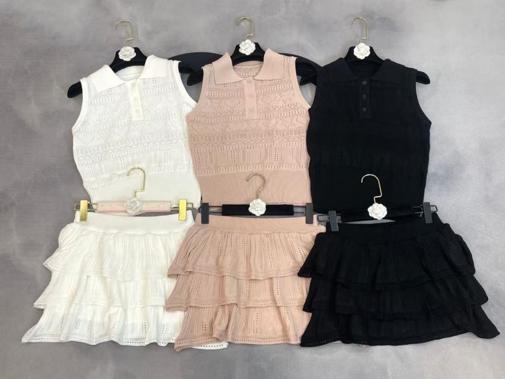 2025 새로운 여름 스타일 nn 홈 러브 할로우 민소매 라펠 풀오버 조끼 + 케이크 스커트 여성 투피스 슈트