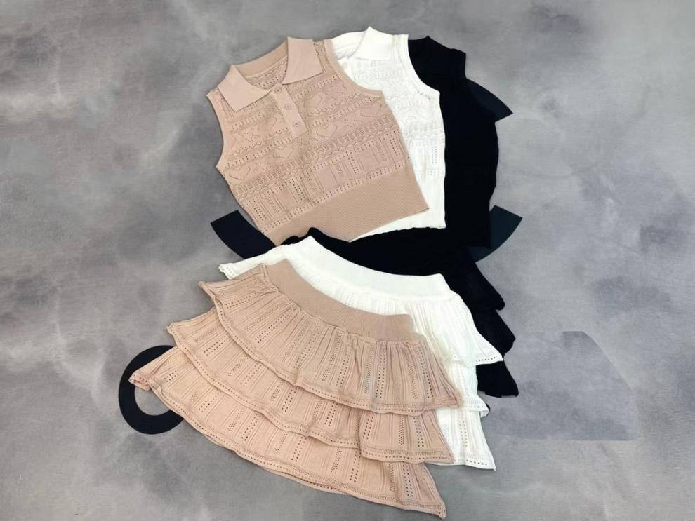 2025 새로운 여름 스타일 nn 홈 러브 할로우 민소매 라펠 풀오버 조끼 + 케이크 스커트 여성 투피스 슈트스토어 가기
