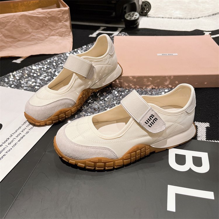 발이 피곤하지 않은 두꺼운 밑창 벨크로 메리제인 여성용 만능 라운드 토 캐주얼 슈즈, 원레그 레트로 스포츠 슈즈
