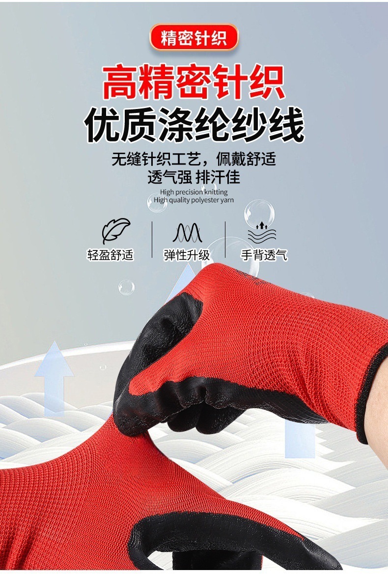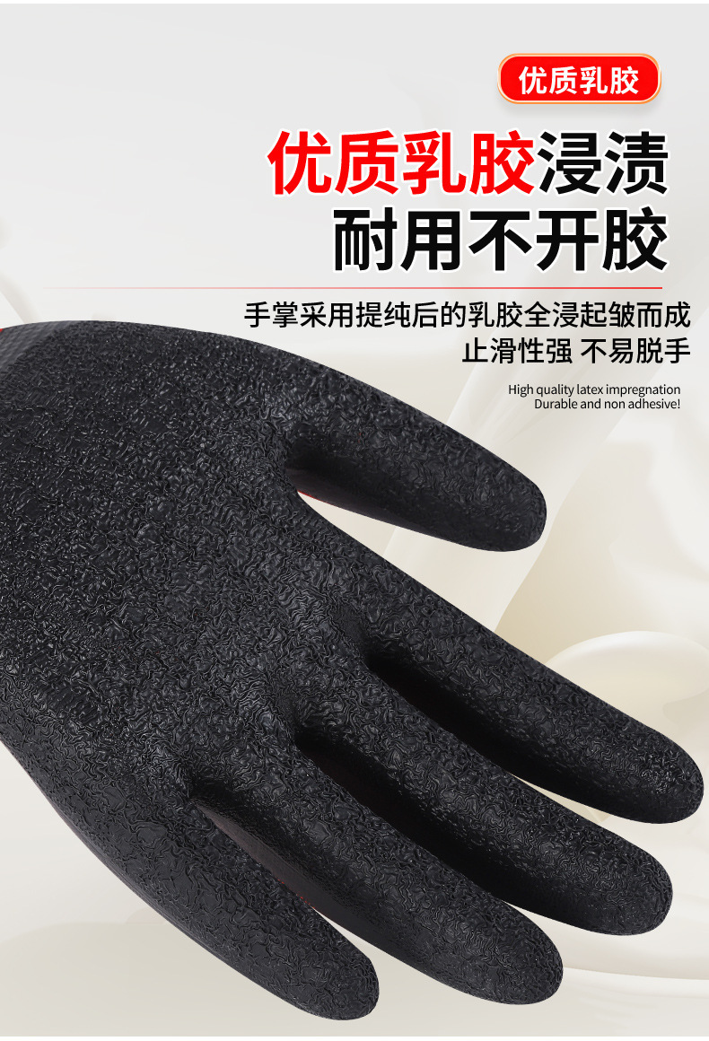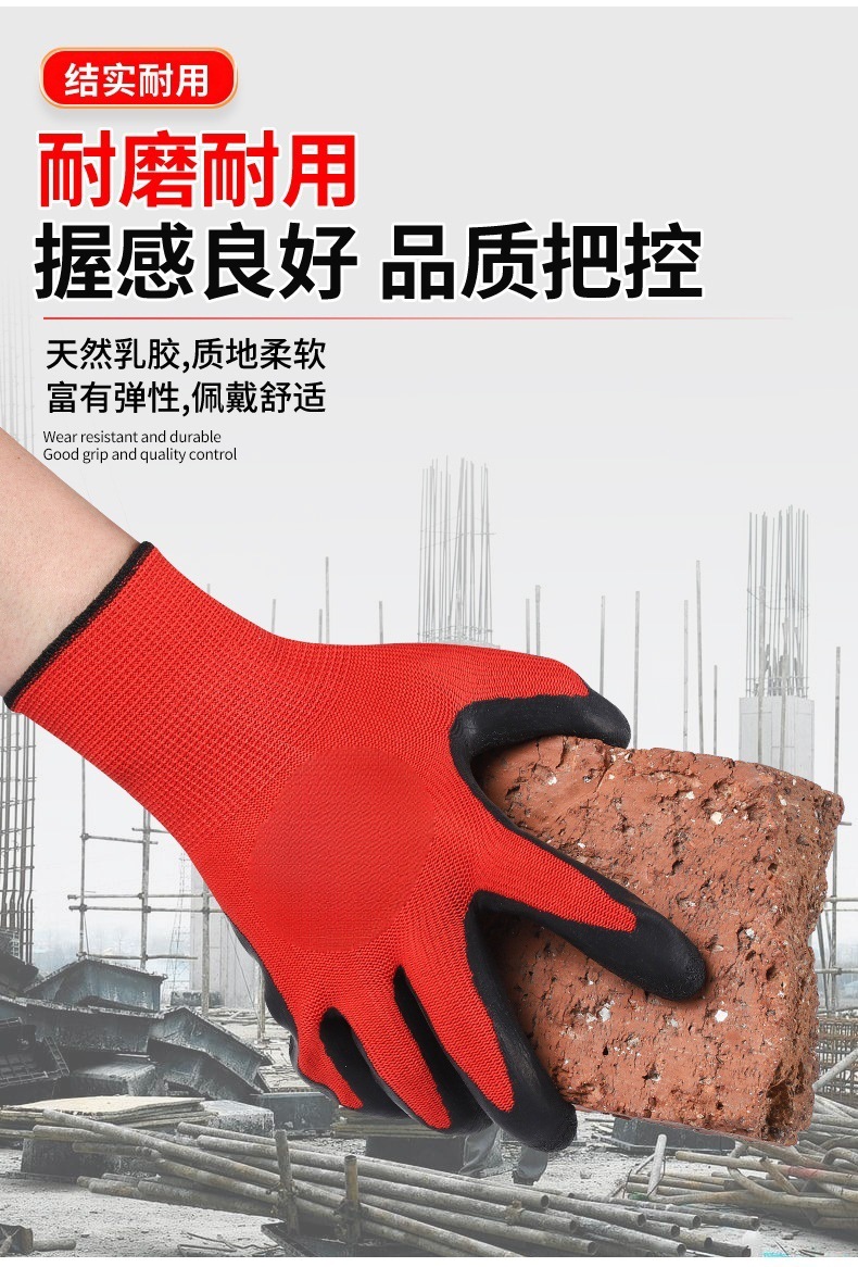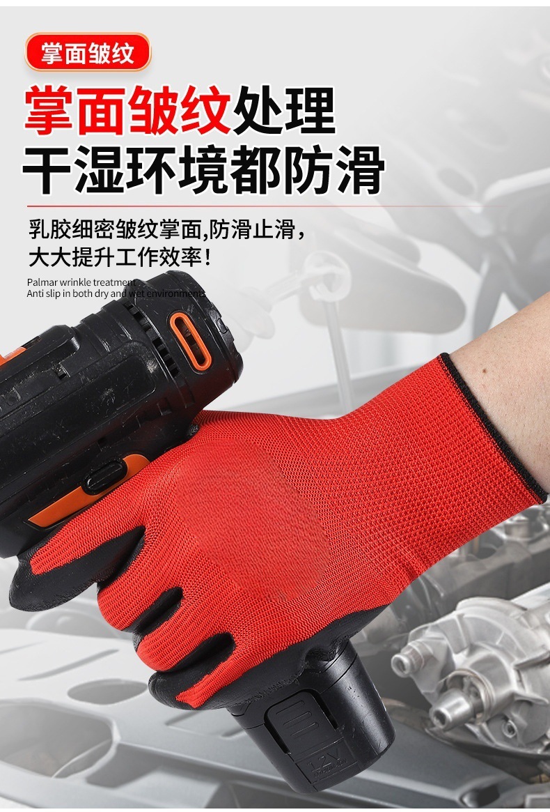 라텍스 발포 함침 노동 보호 장갑 미끄럼 방지 건설 현장 작업 내마모성 나일론 주름 보호 장갑