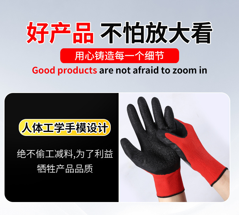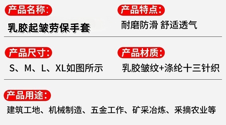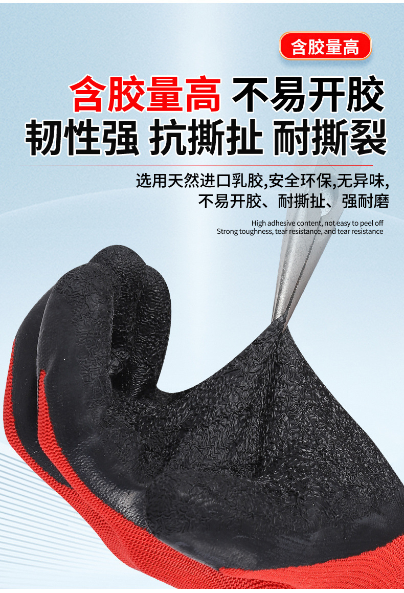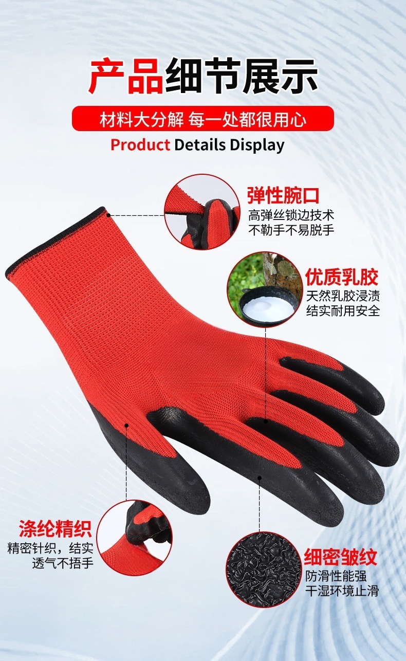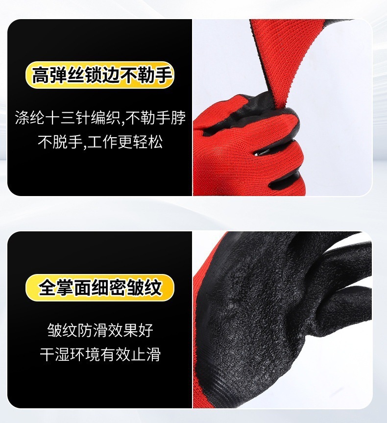 • 빨간색 라텍스 주름 노동 보호 장갑