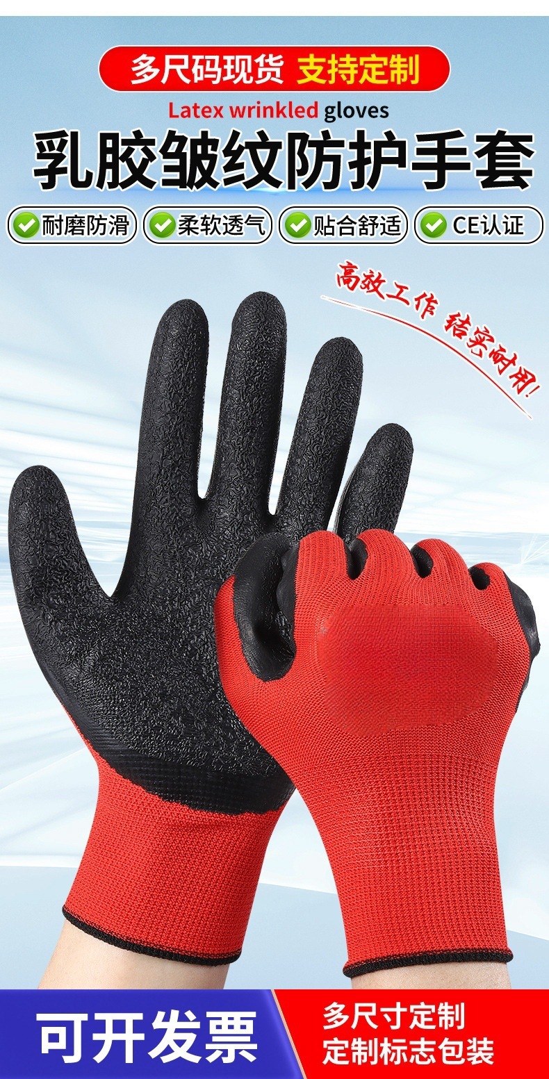 라텍스 발포 함침 노동 보호 장갑 미끄럼 방지 건설 현장 작업 내마모성 나일론 주름 보호 장갑스토어 가기
