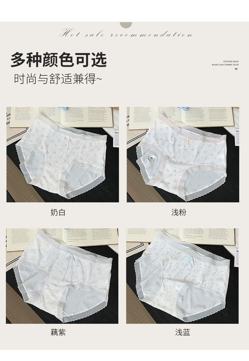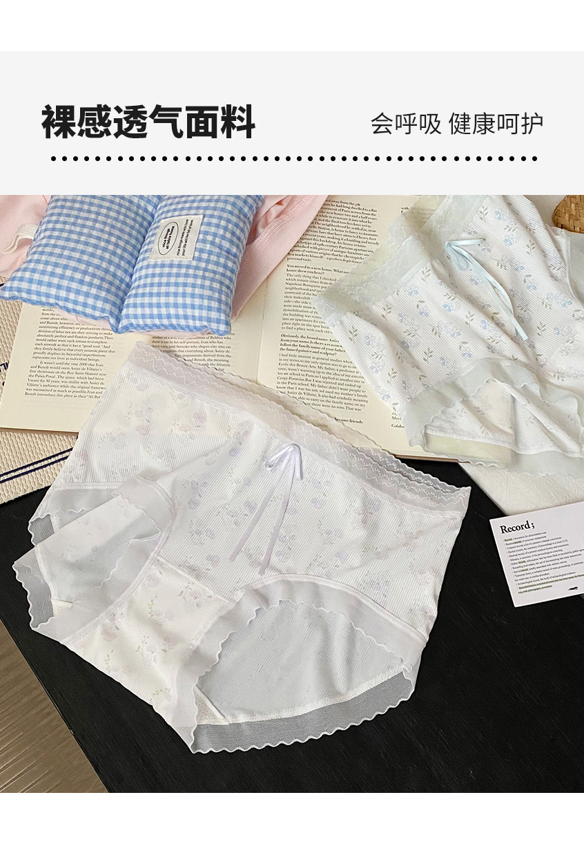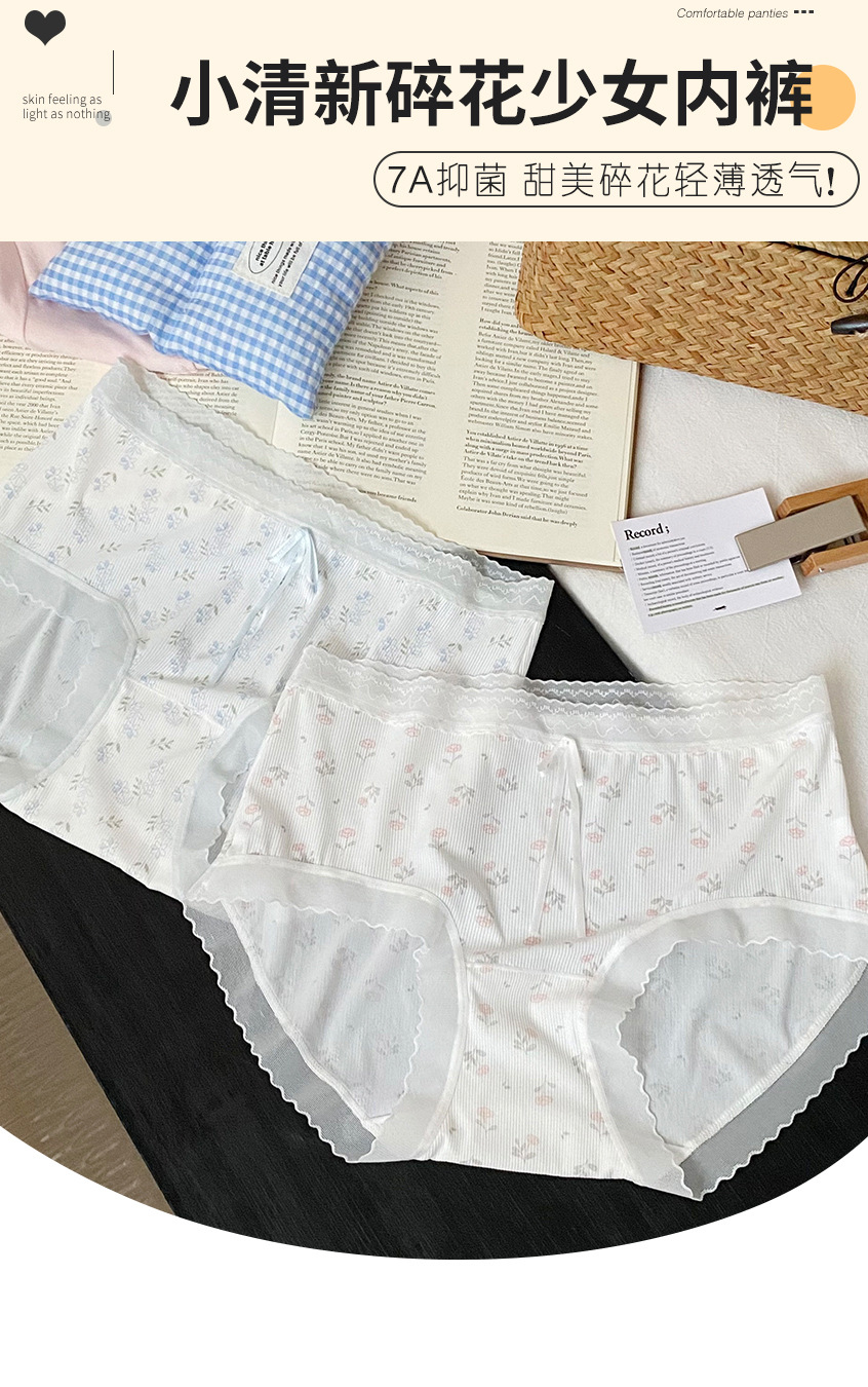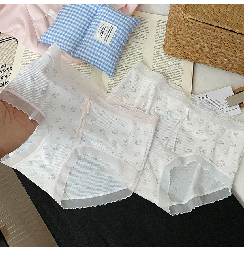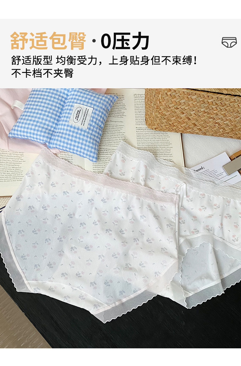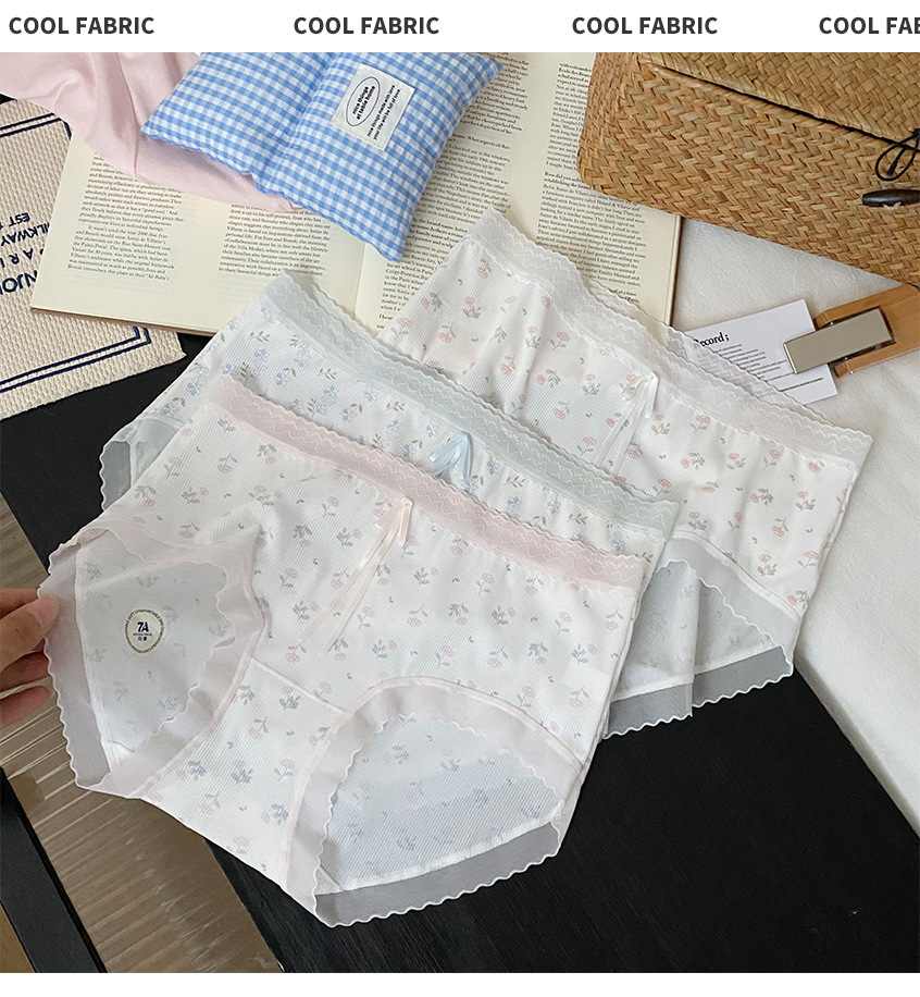 여름 꽃무늬 얇은 레이스 소녀 속옷, 편안하고 통기성이 있으며 엉덩이를 덮는 7A 항균 및 시원한 얼음 실크 삼각형 반바지