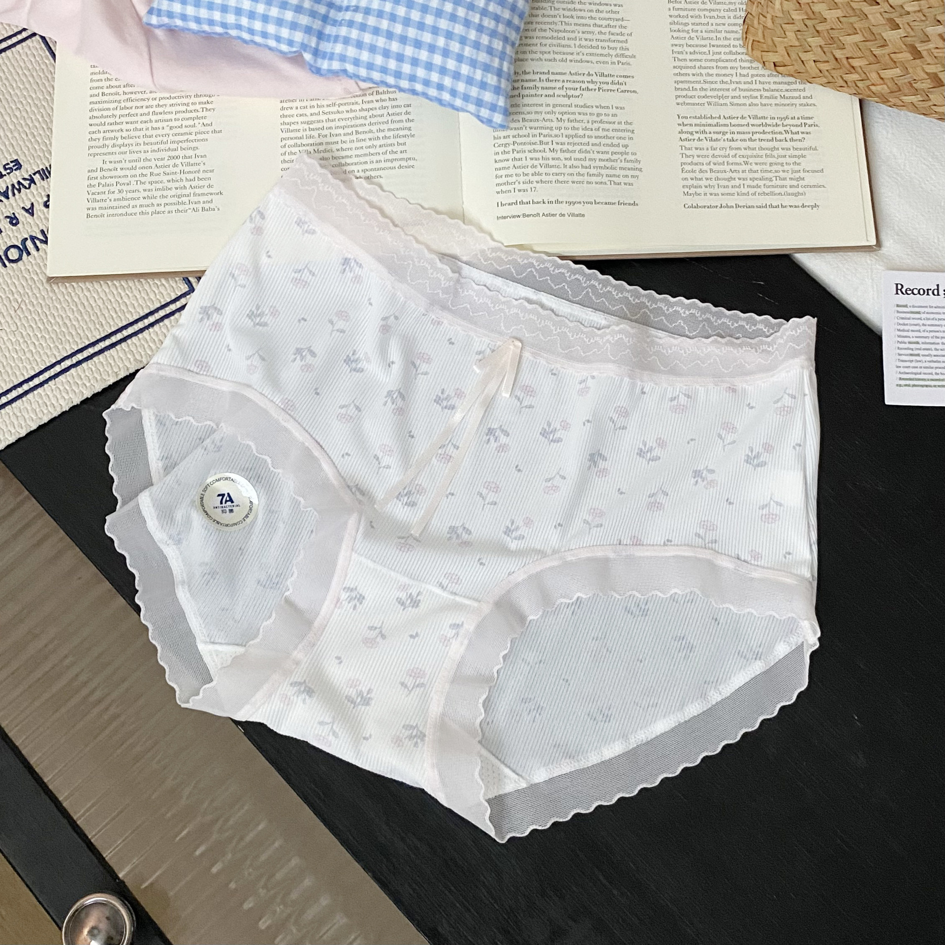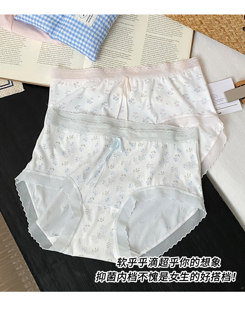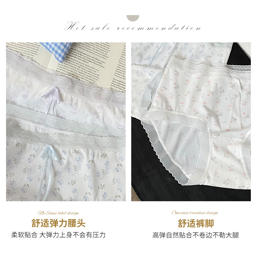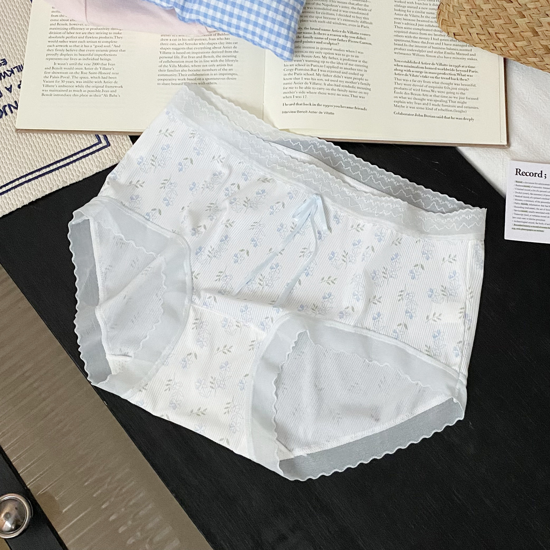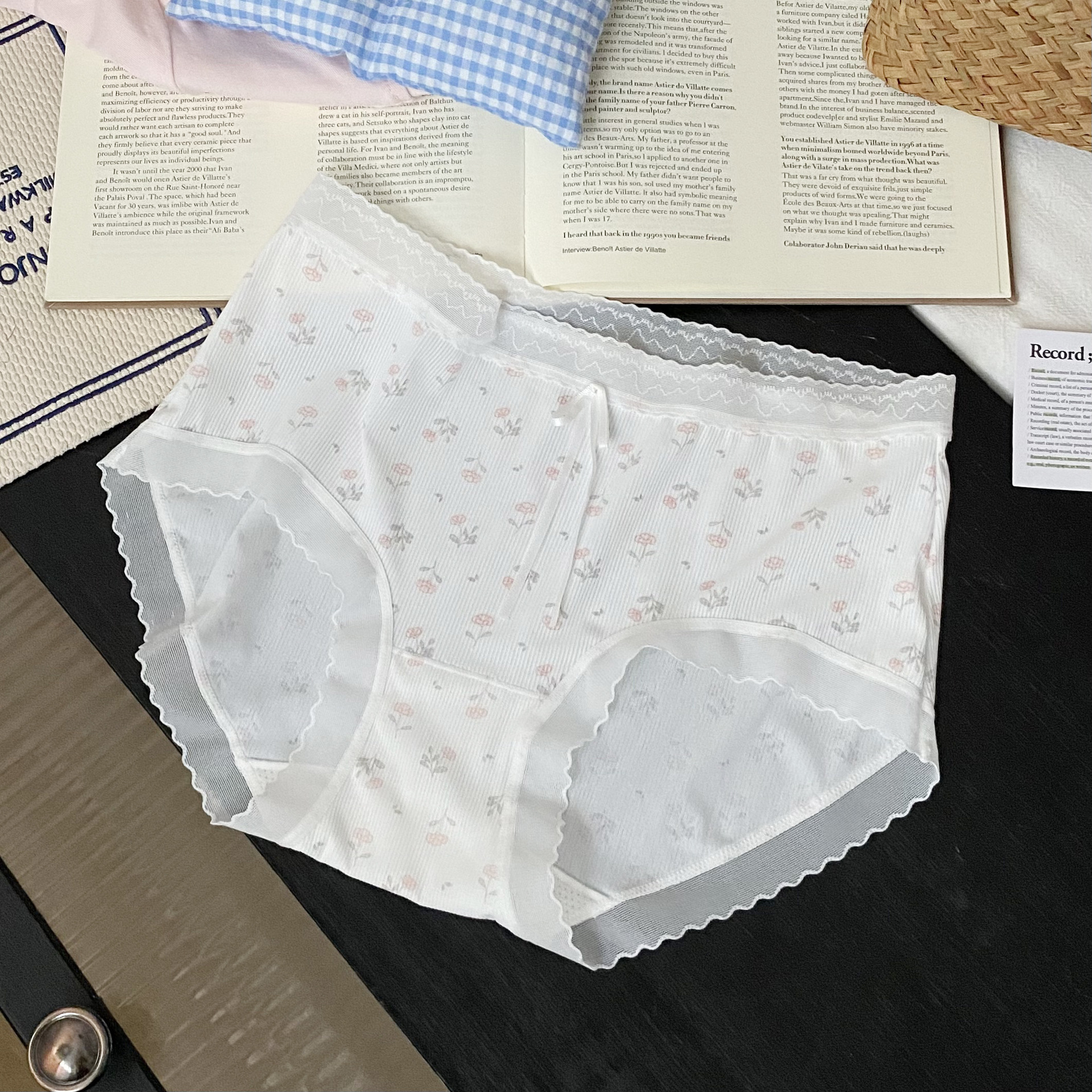 여름 꽃무늬 얇은 레이스 소녀 속옷, 편안하고 통기성이 있으며 엉덩이를 덮는 7A 항균 및 시원한 얼음 실크 삼각형 반바지