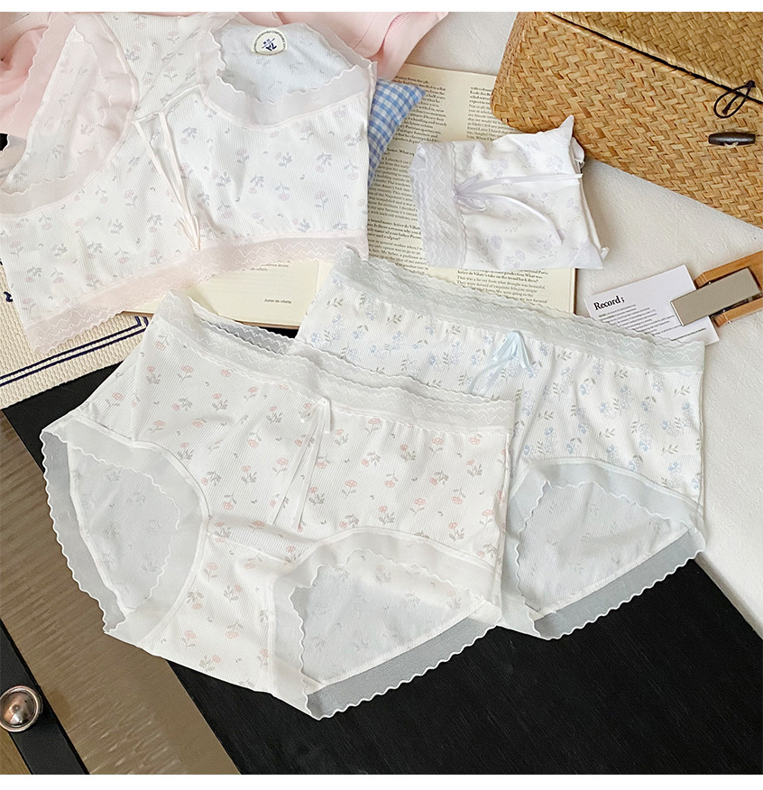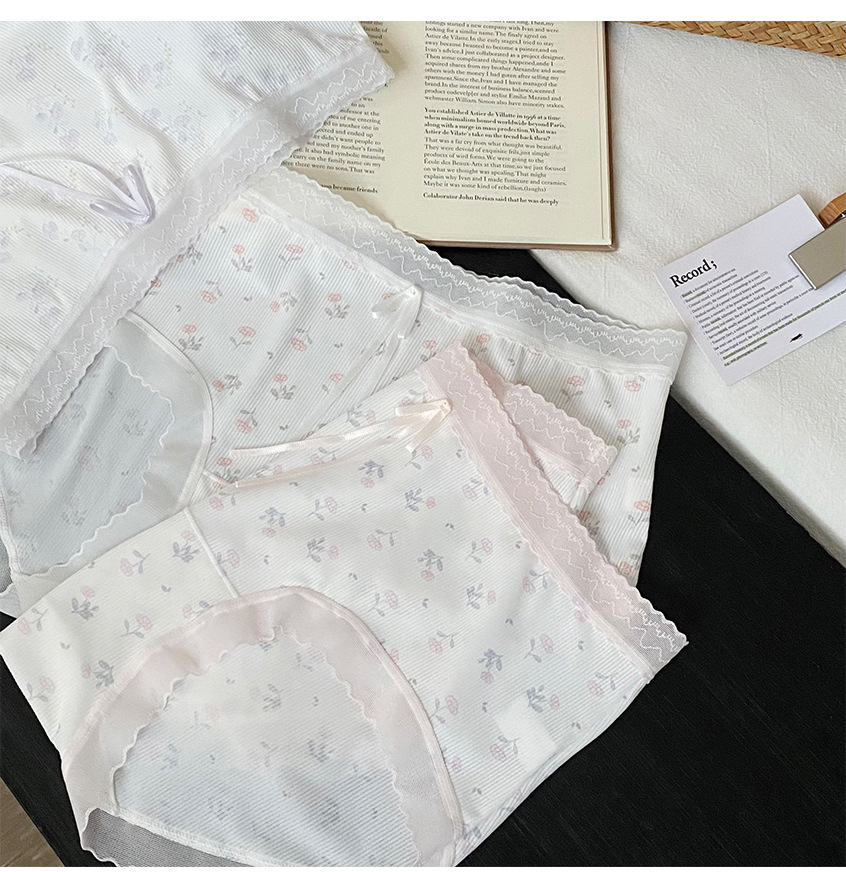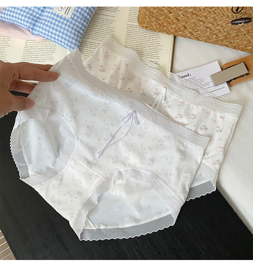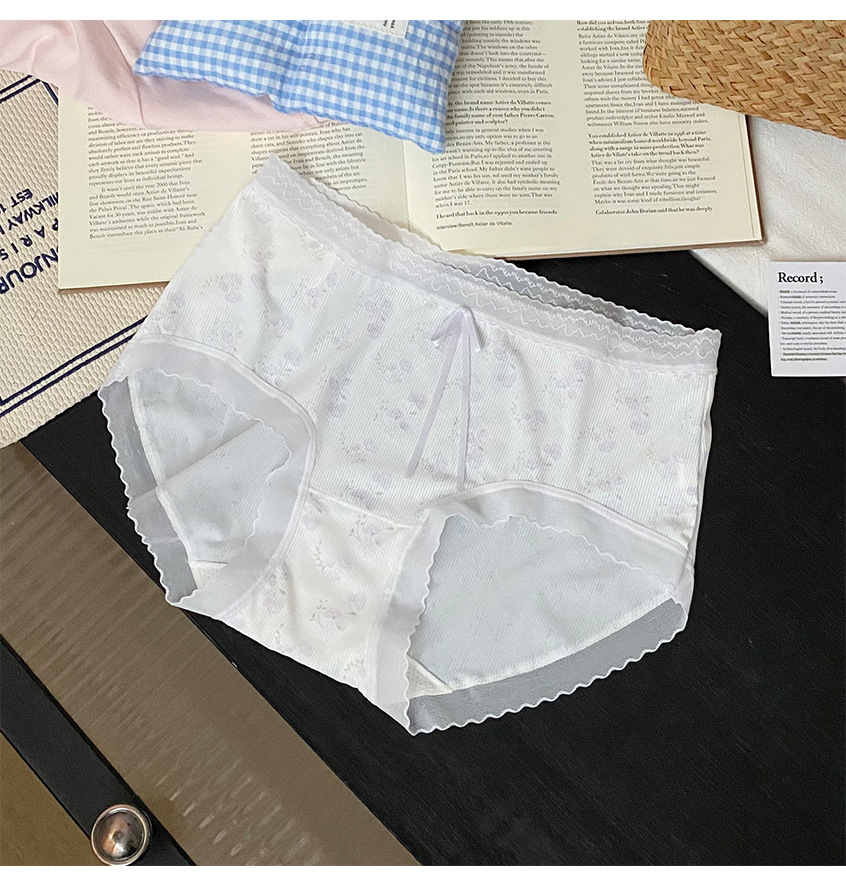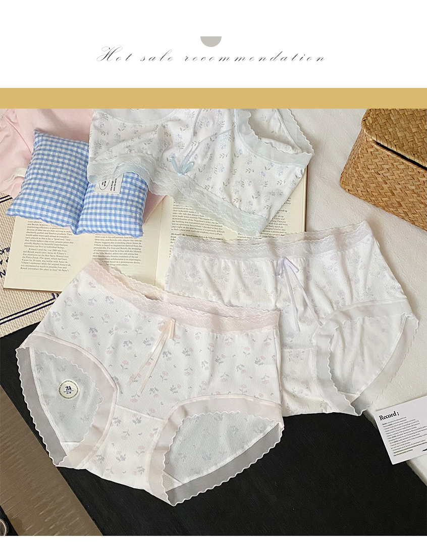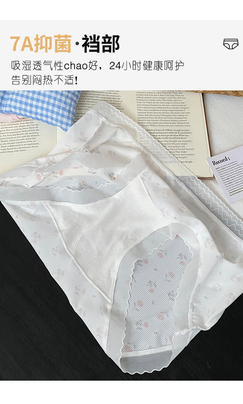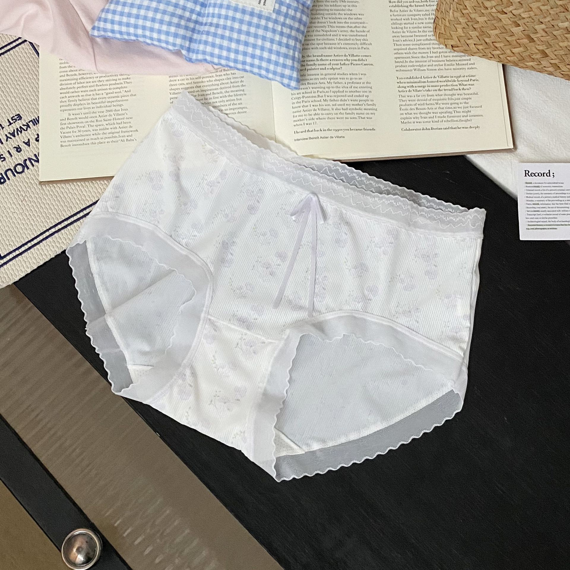 여름 꽃무늬 얇은 레이스 소녀 속옷, 편안하고 통기성이 있으며 엉덩이를 덮는 7A 항균 및 시원한 얼음 실크 삼각형 반바지
