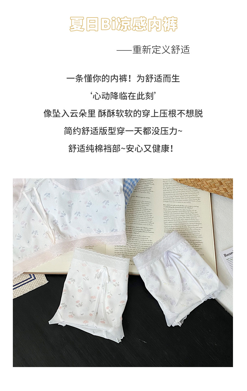 여름 꽃무늬 얇은 레이스 소녀 속옷, 편안하고 통기성이 있으며 엉덩이를 덮는 7A 항균 및 시원한 얼음 실크 삼각형 반바지스토어 가기