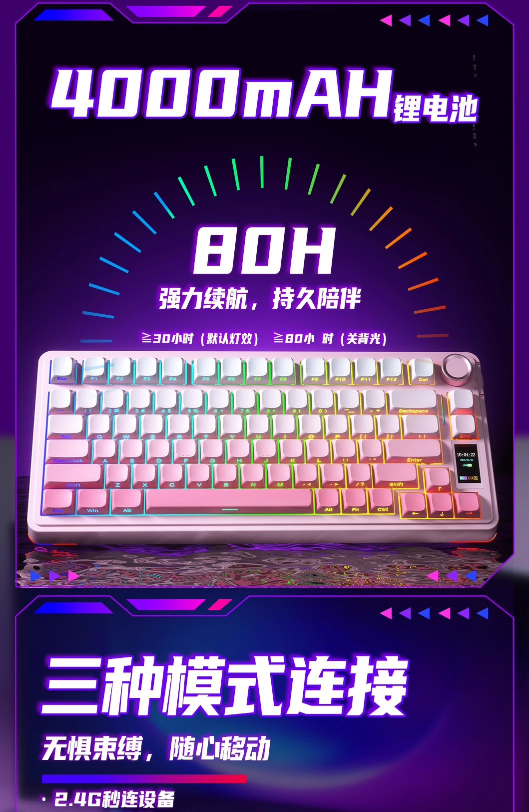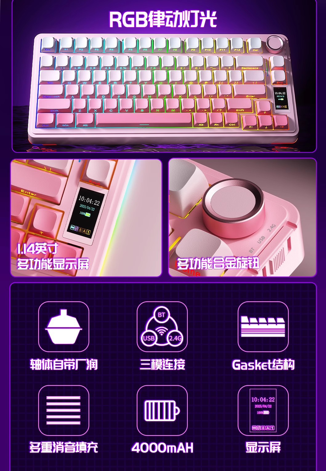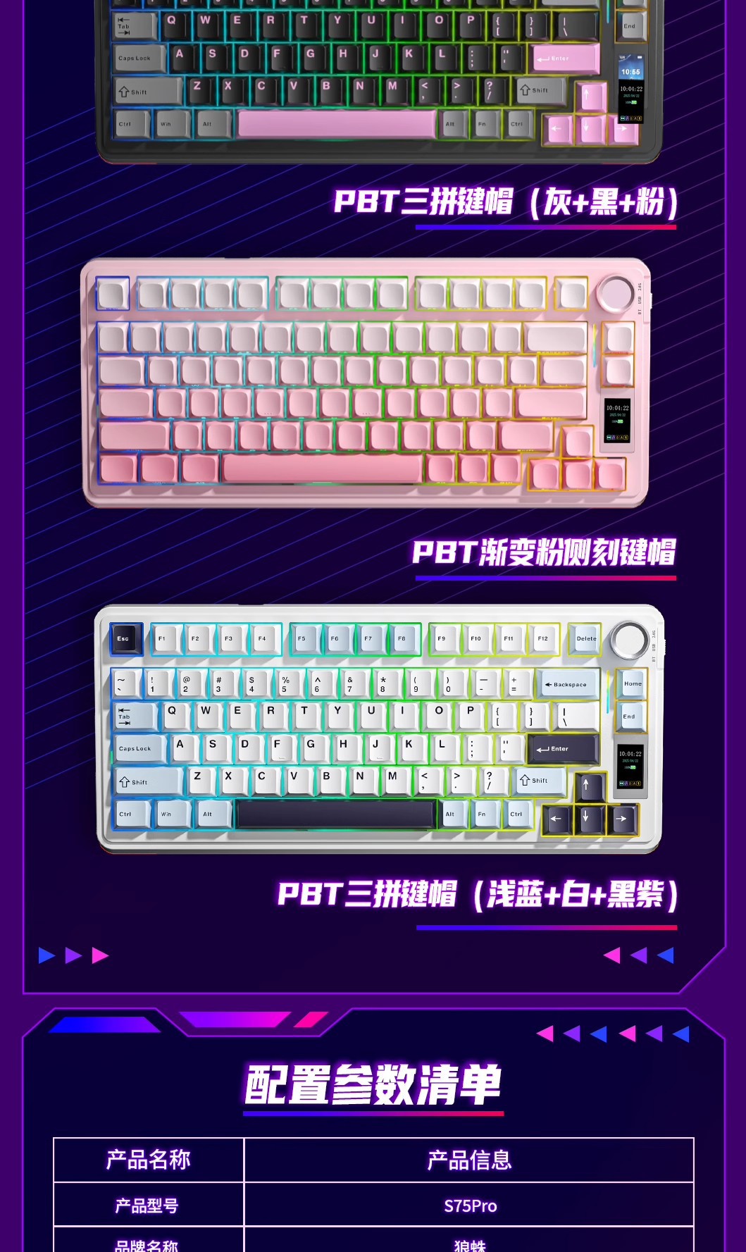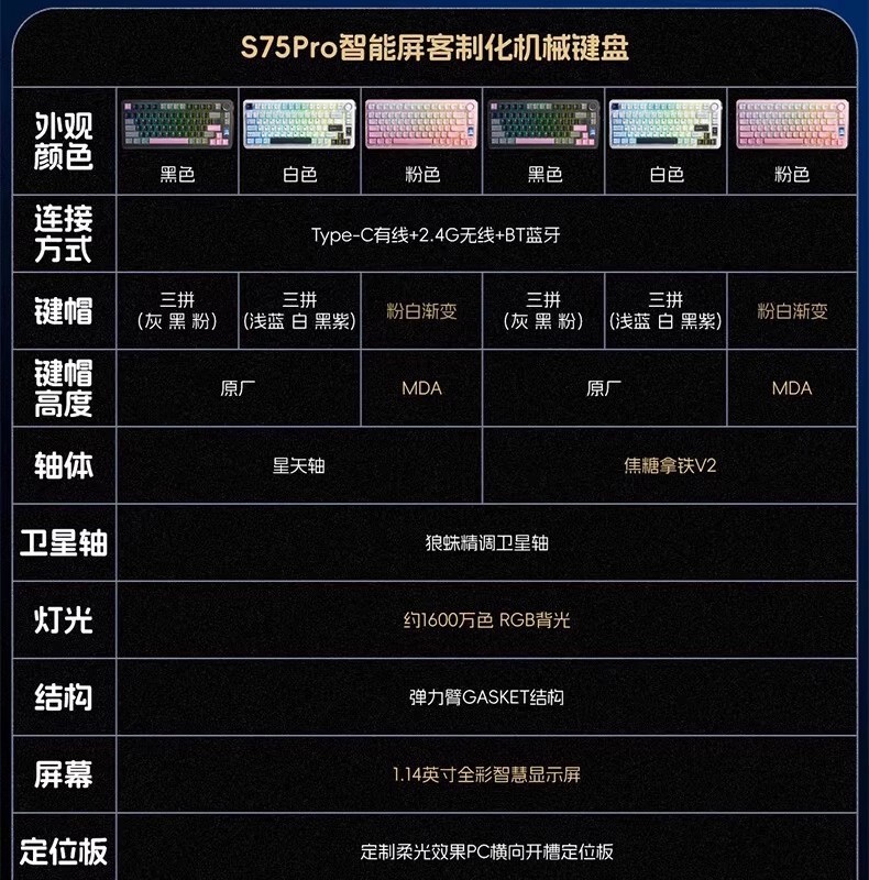 Wolf Spider S75pro 맞춤형 3모드 기계식 키보드 무선 블루투스 스크린 사무용 게임용 e스포츠 기계식 스위치스토어 가기