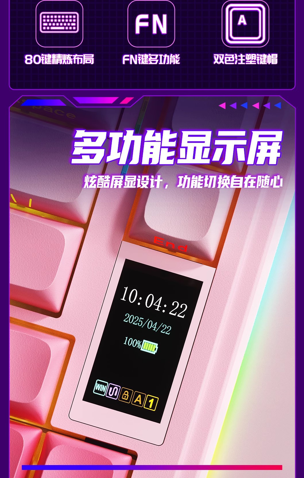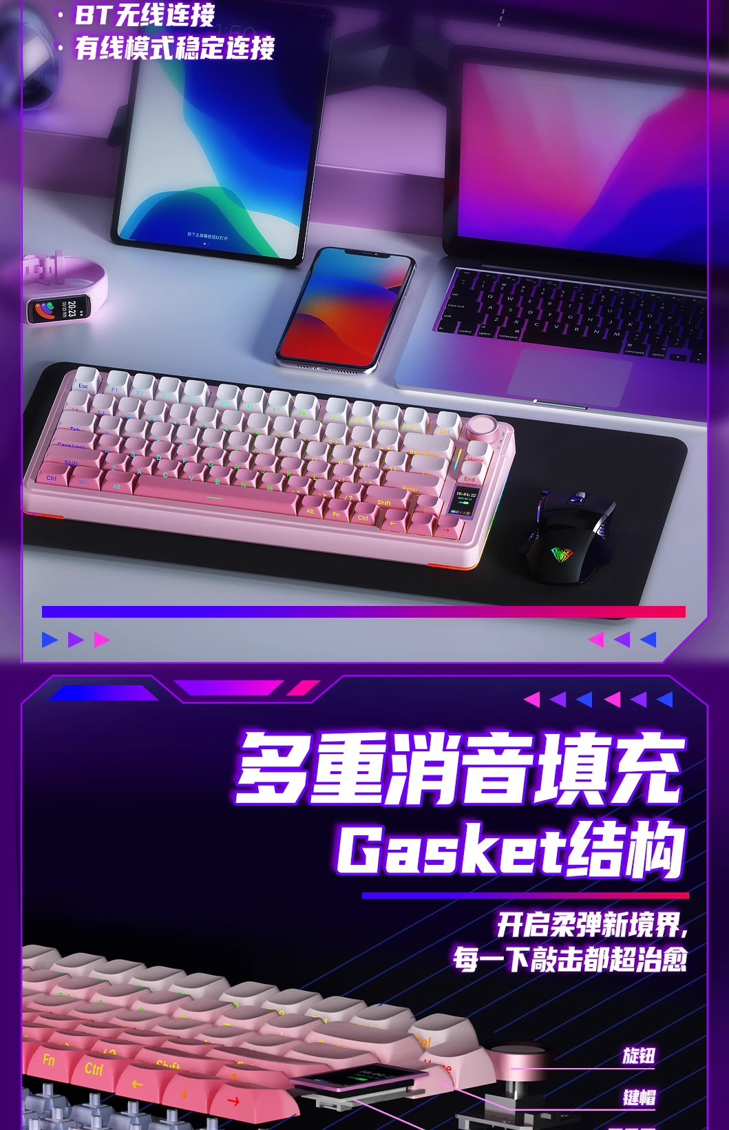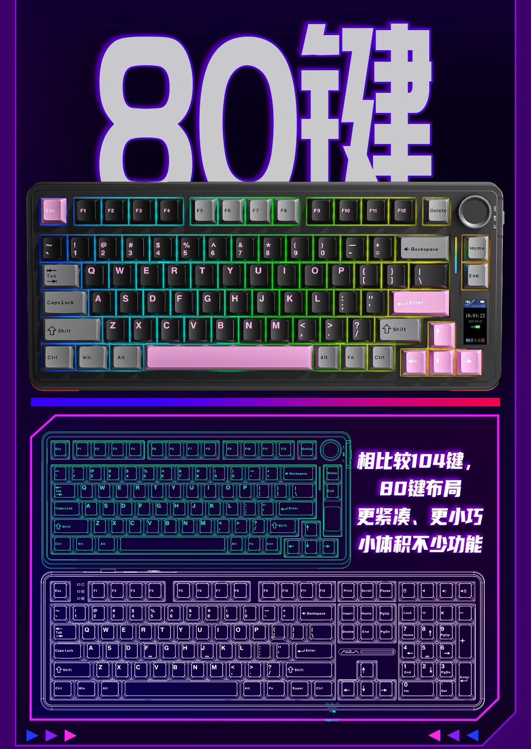 Wolf Spider S75pro 맞춤형 3모드 기계식 키보드 무선 블루투스 스크린 사무용 게임용 e스포츠 기계식 스위치스토어 가기