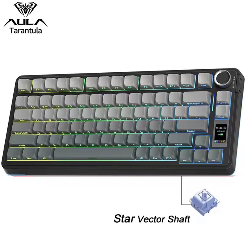 Wolf Spider S75pro 맞춤형 3모드 기계식 키보드 무선 블루투스 스크린 사무용 게임용 e스포츠 기계식 스위치