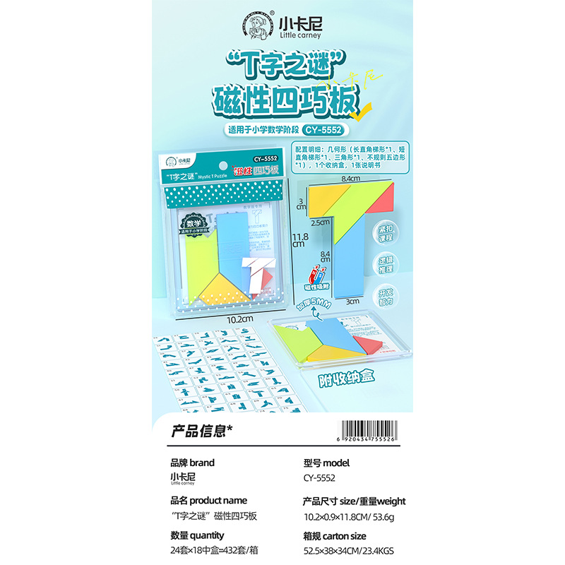 T자형 퍼즐 자기 Tangram T자형 퍼즐 어린이 지적 퍼즐 컬러 퍼즐 유치원 학생 수학 교육 보조 장치스토어 가기