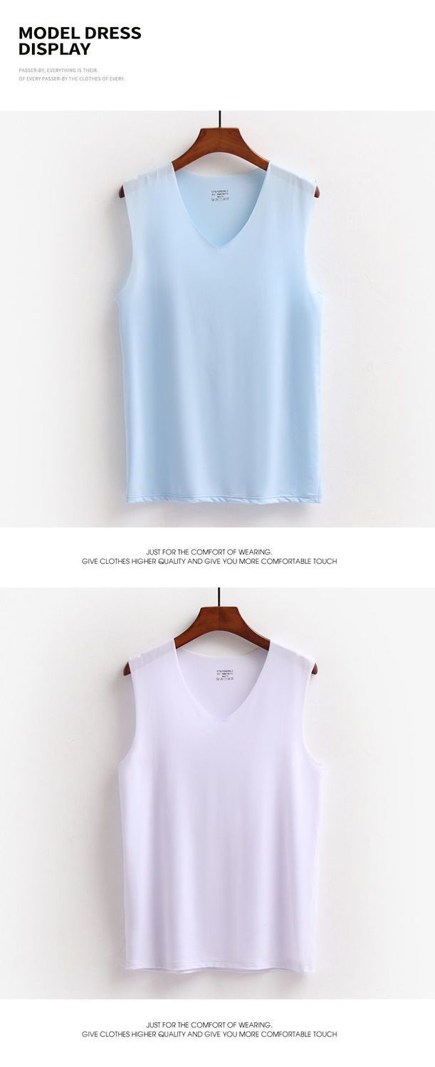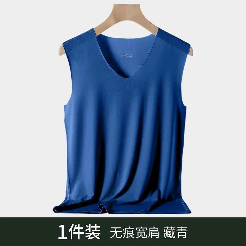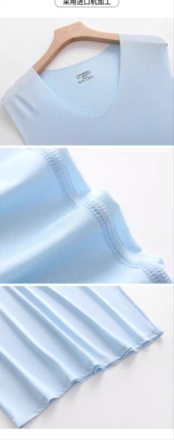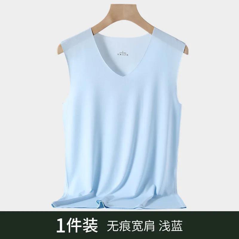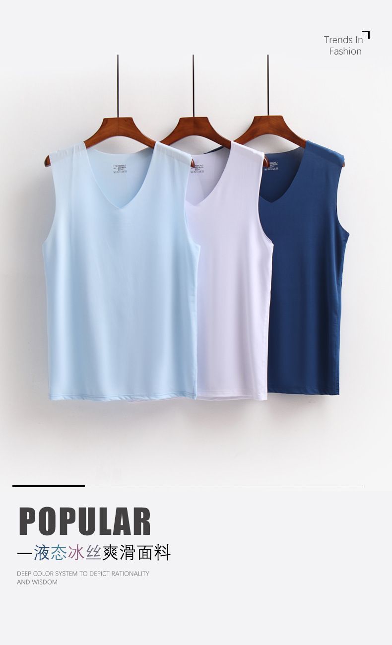 남성용 브이넥 아이스 실크 조끼, 이너웨어, 심리스 베이스 레이어, 청소년 아이스 느낌, 솔리드 컬러, 스트레치 스포츠 홈, 얇은 여름스토어 가기