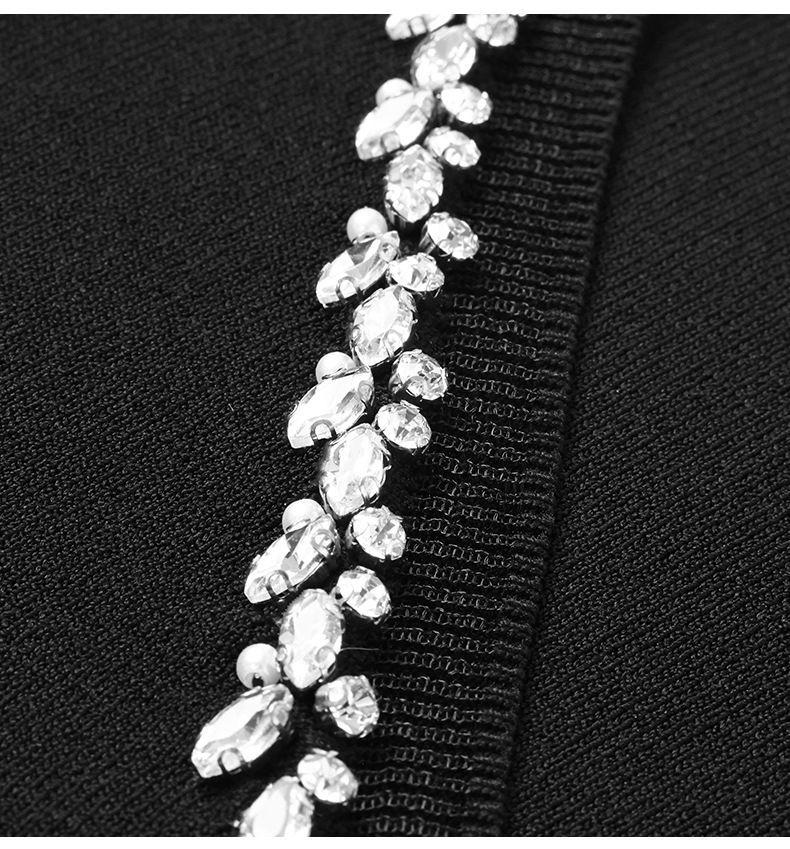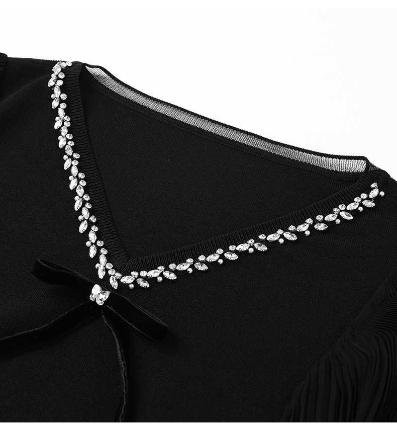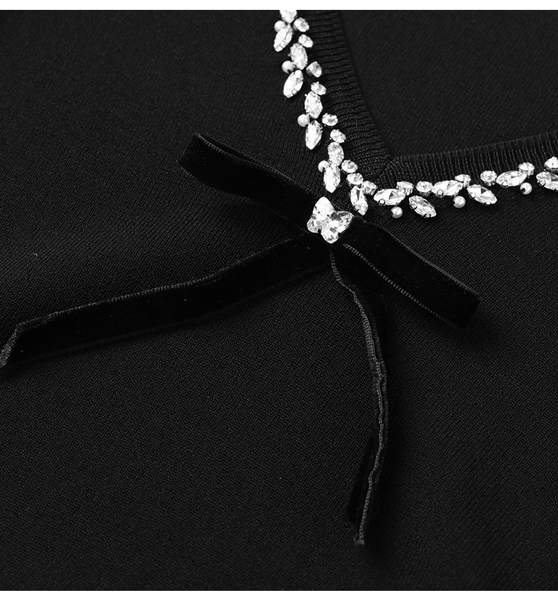 小香风v领长袖黑色针织衫女2025秋季新款重工钉珠镶钻蝴蝶结上衣