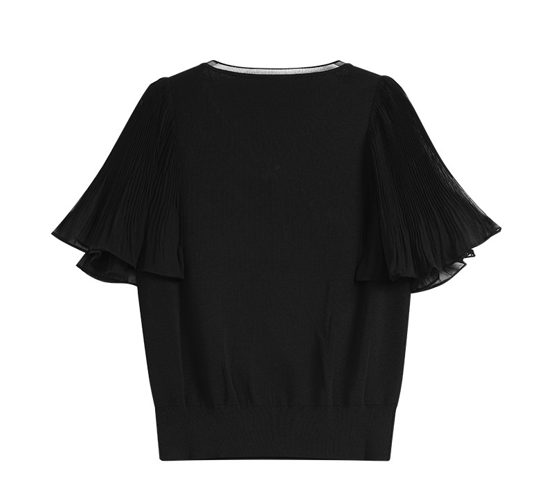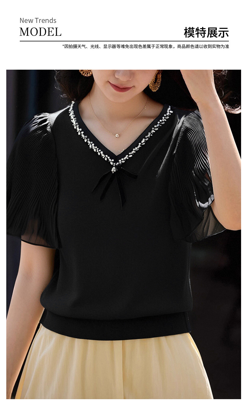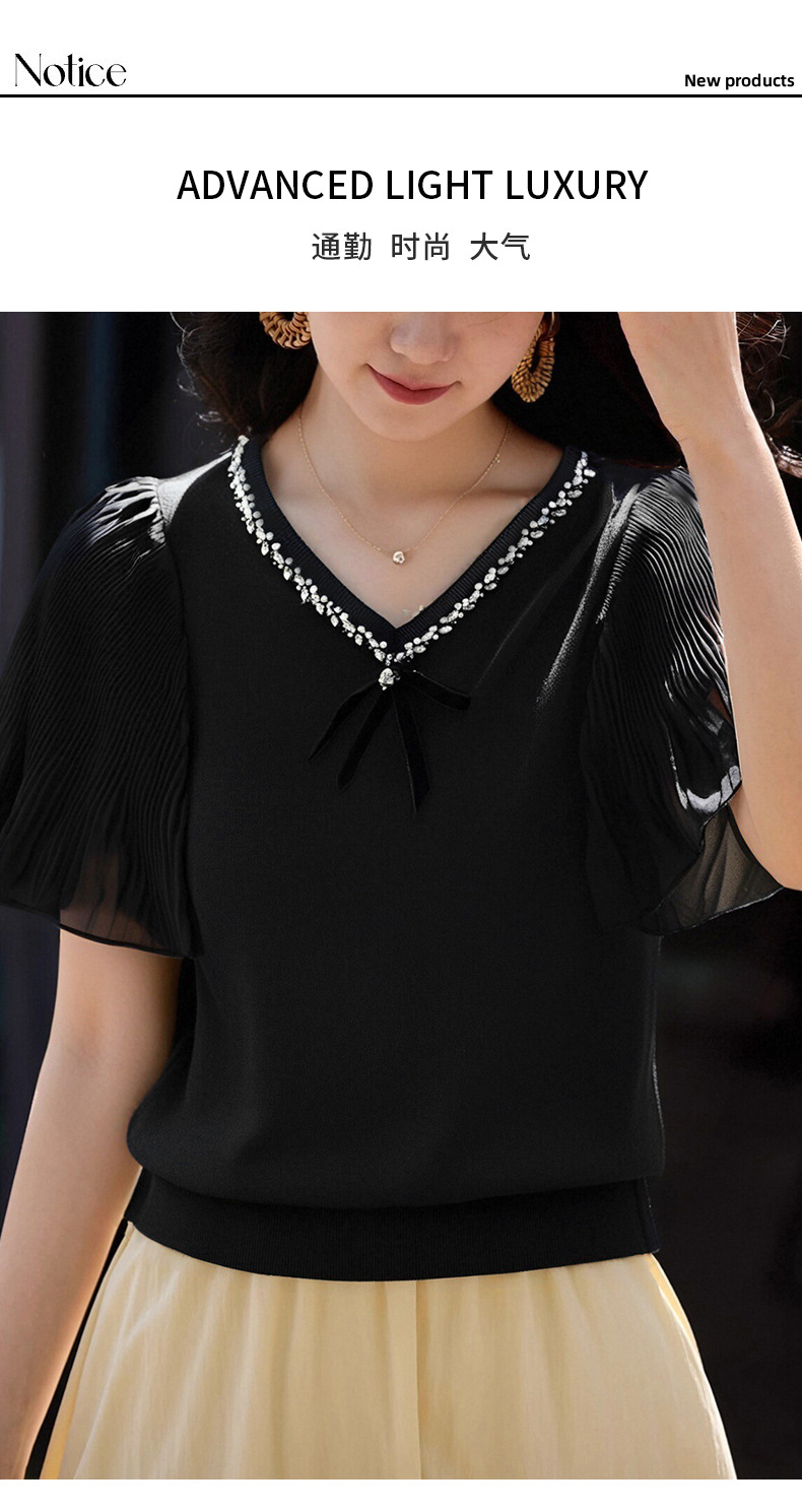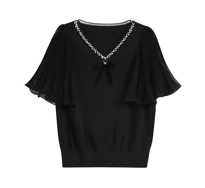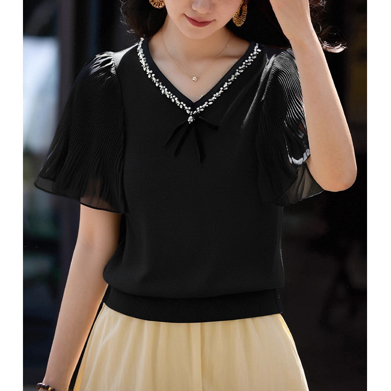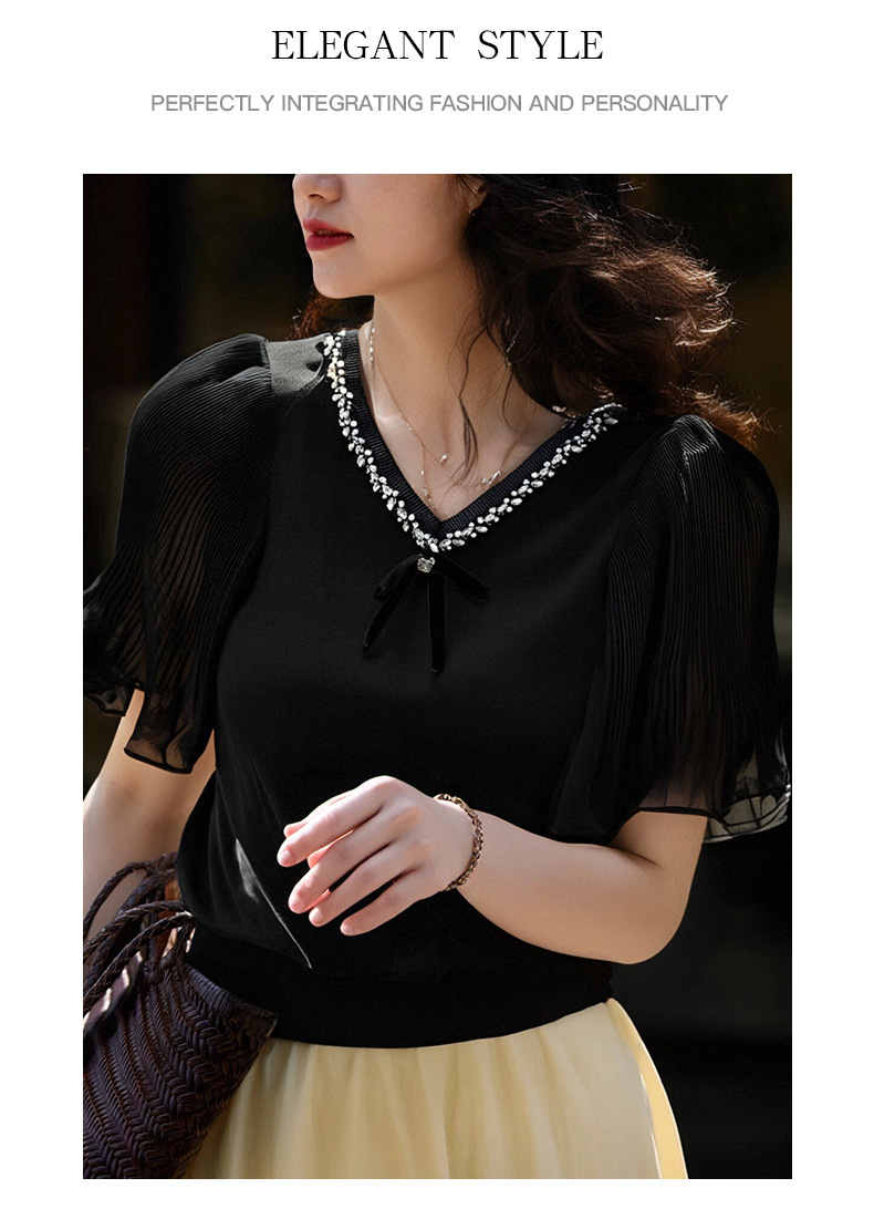 여성을위한 프랑스 중공업 다이아몬드 v 넥 블랙 스웨터 여름 새 스타일 2025 기질 패션 루즈 슬리밍 탑