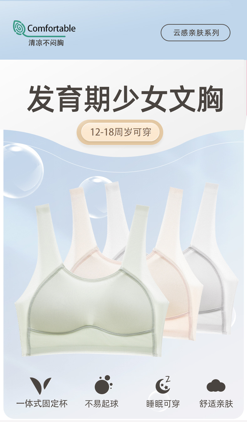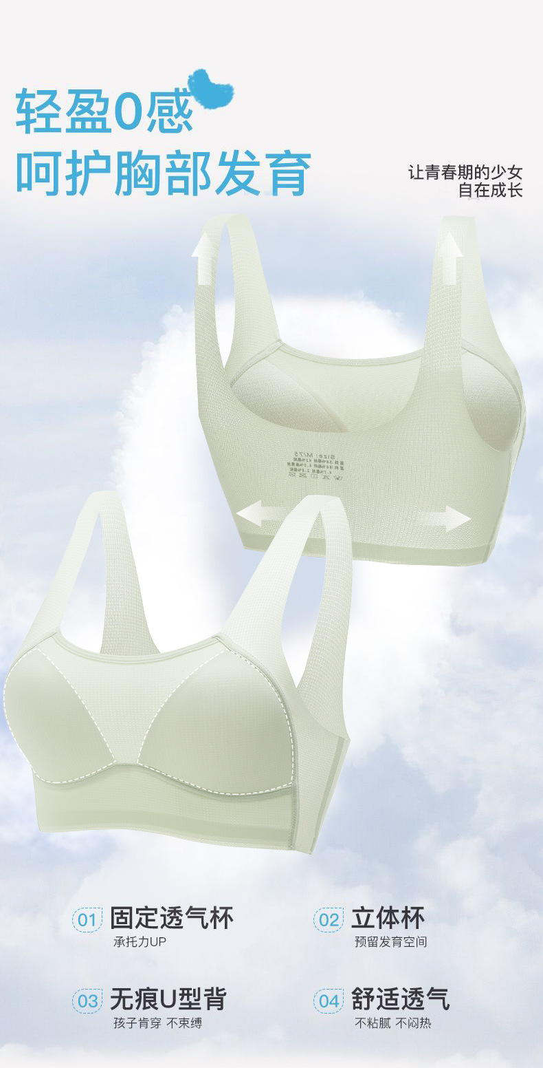 여아 여름 얇은 속옷, 중학생, 고등학생 속옷, 청소년 발달기 스포츠 충격 방지 브라