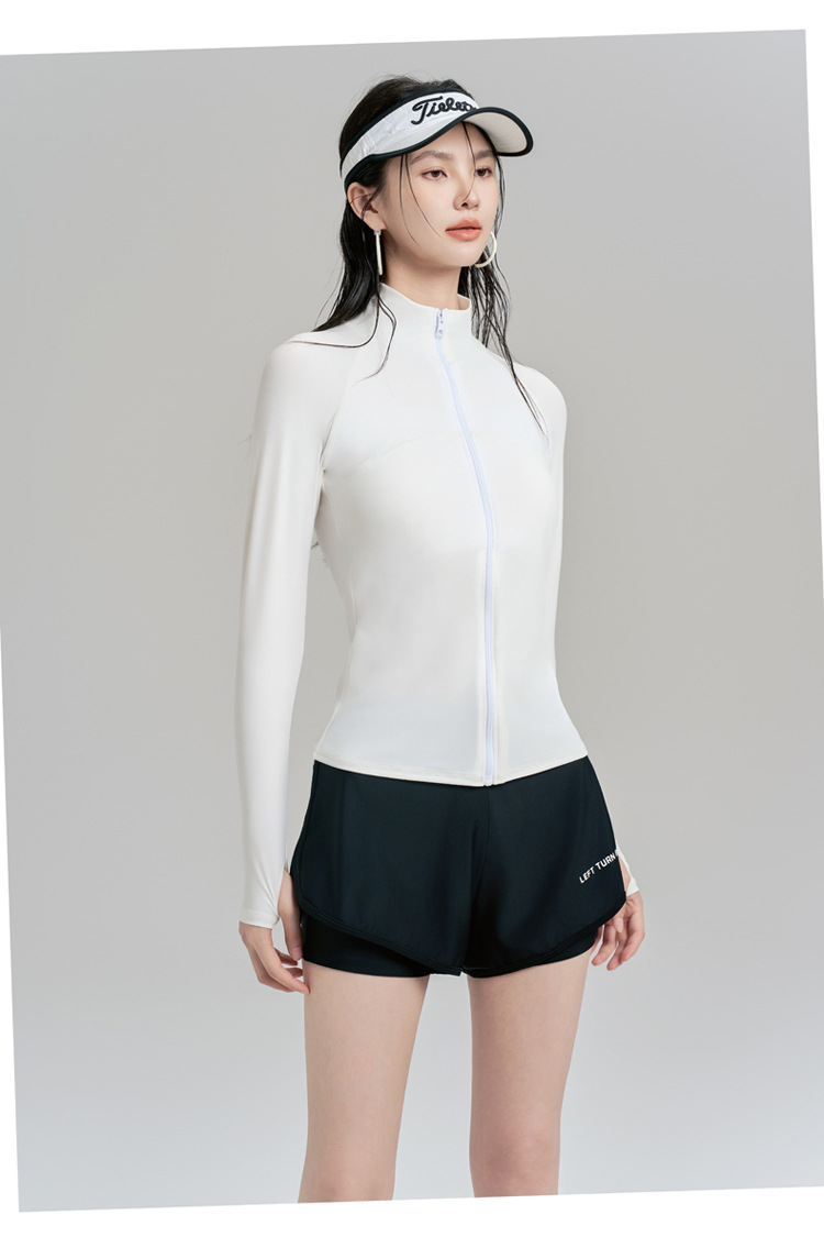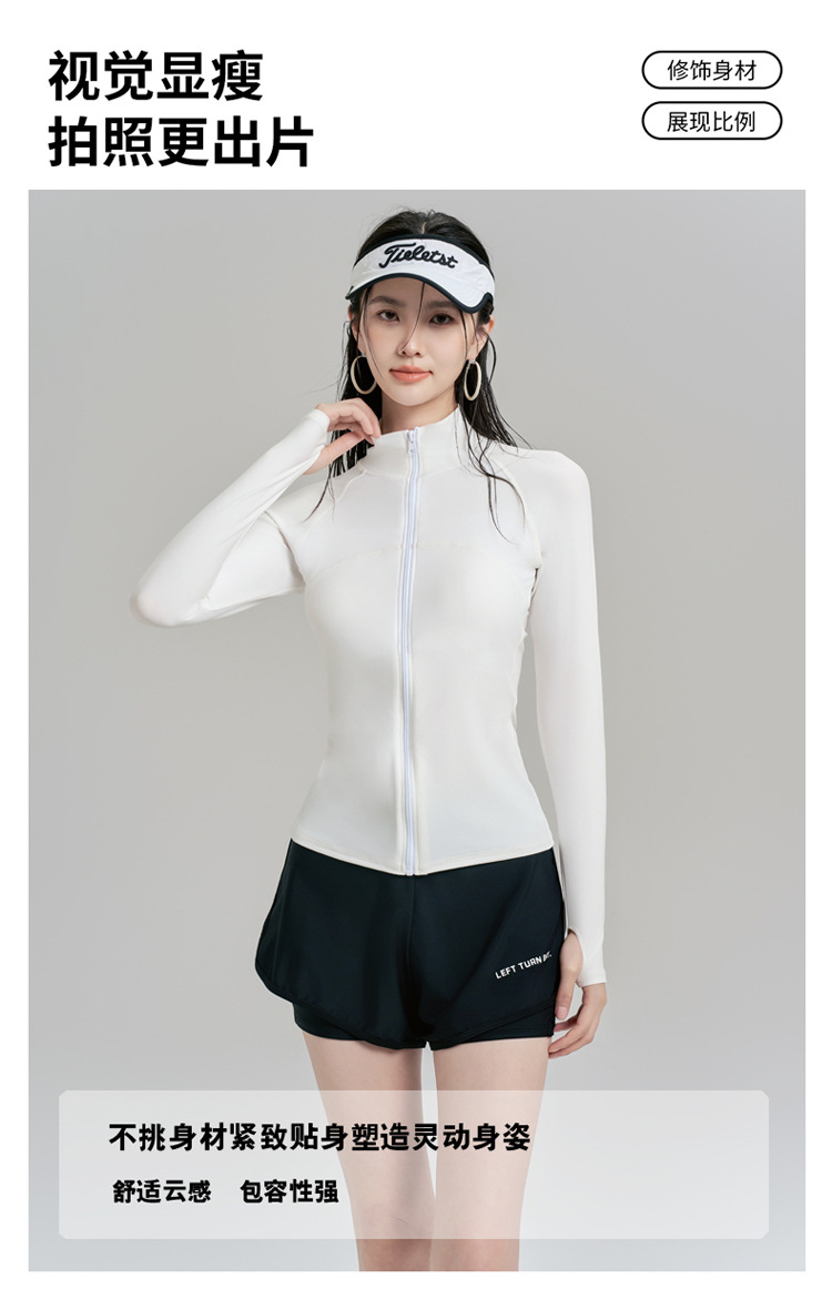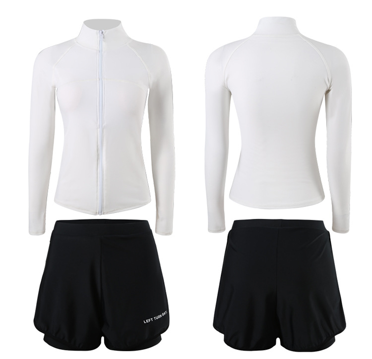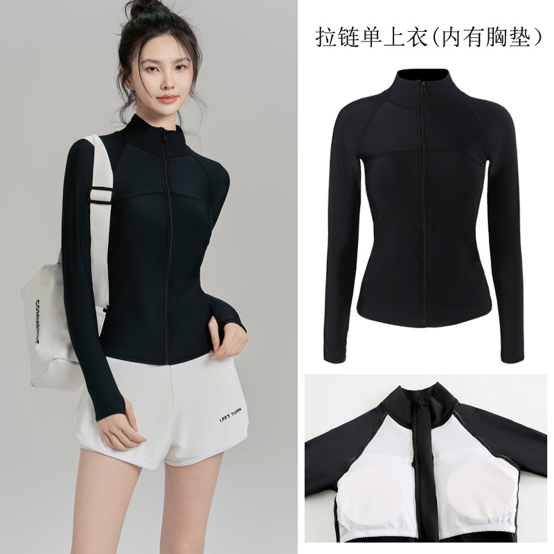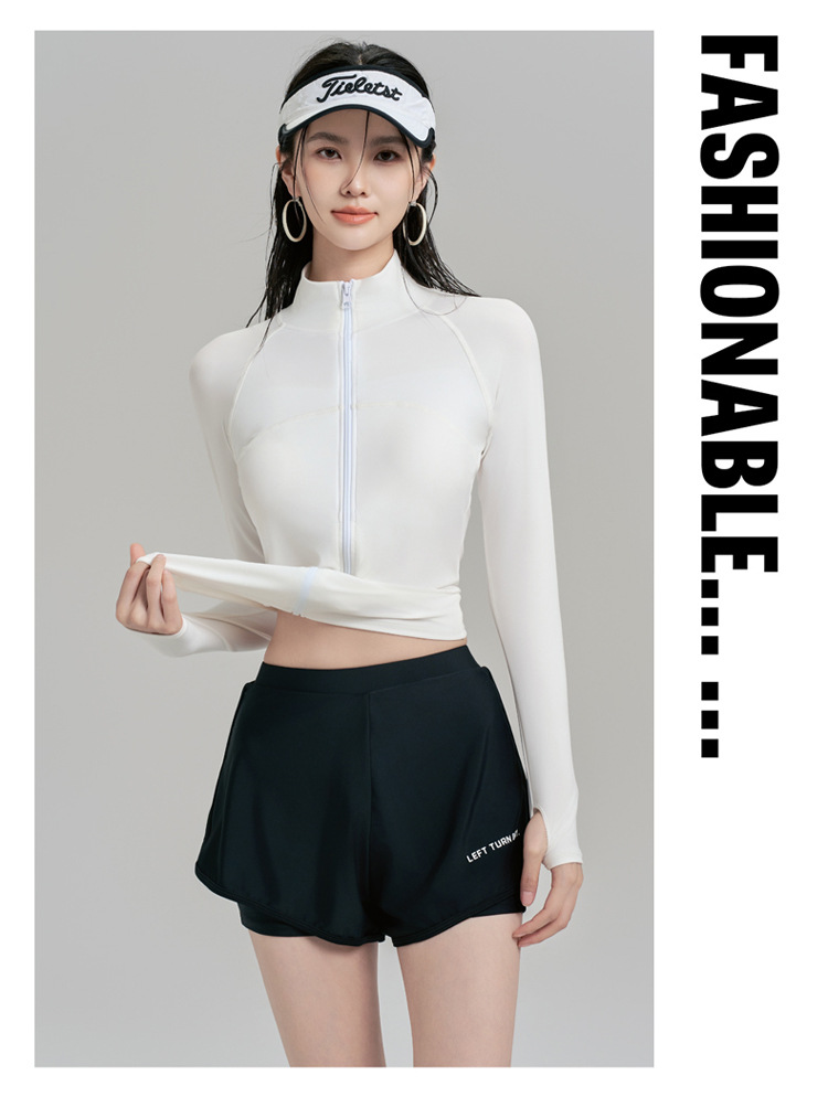 여름 자외선 차단 및 자외선 차단 긴팔 잠수복 여성용 스플릿 투피스 스포츠 수영복 대비 색상 슬리밍 서핑 슈트