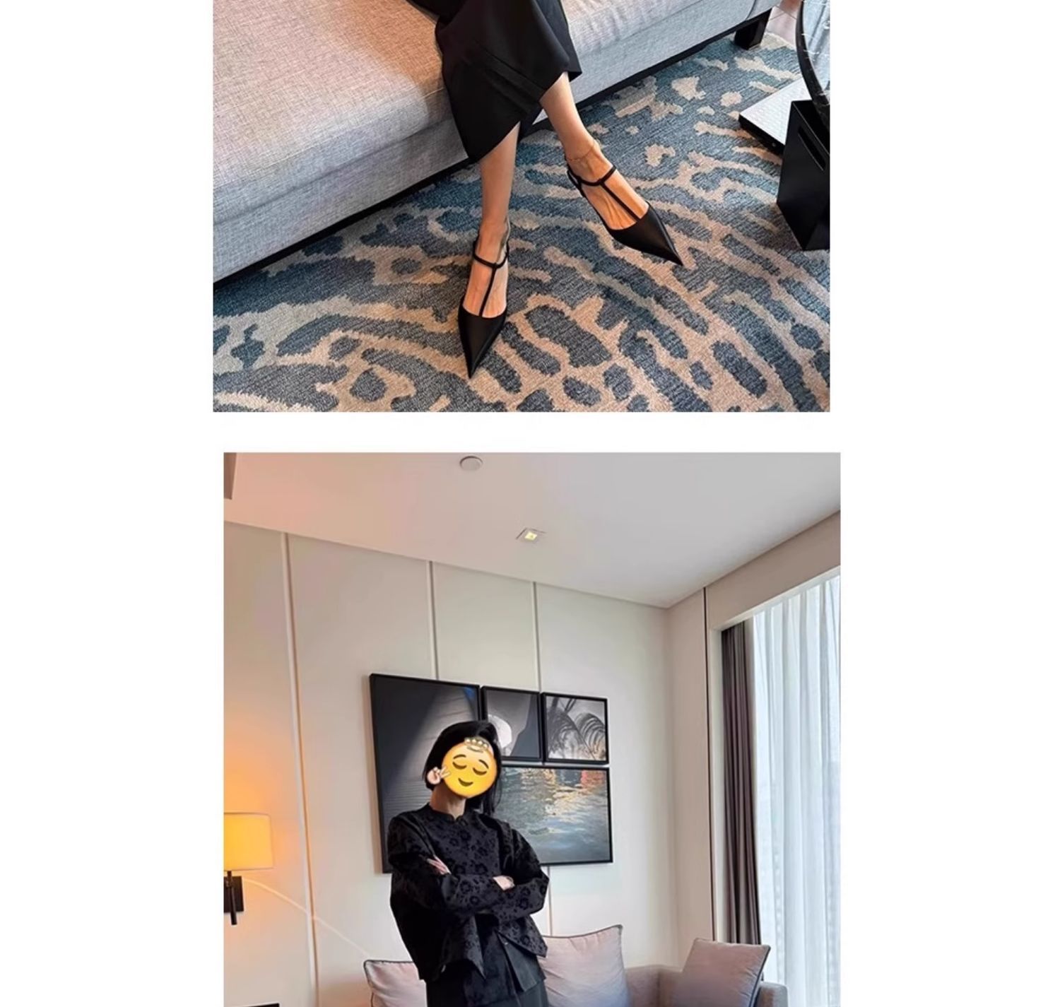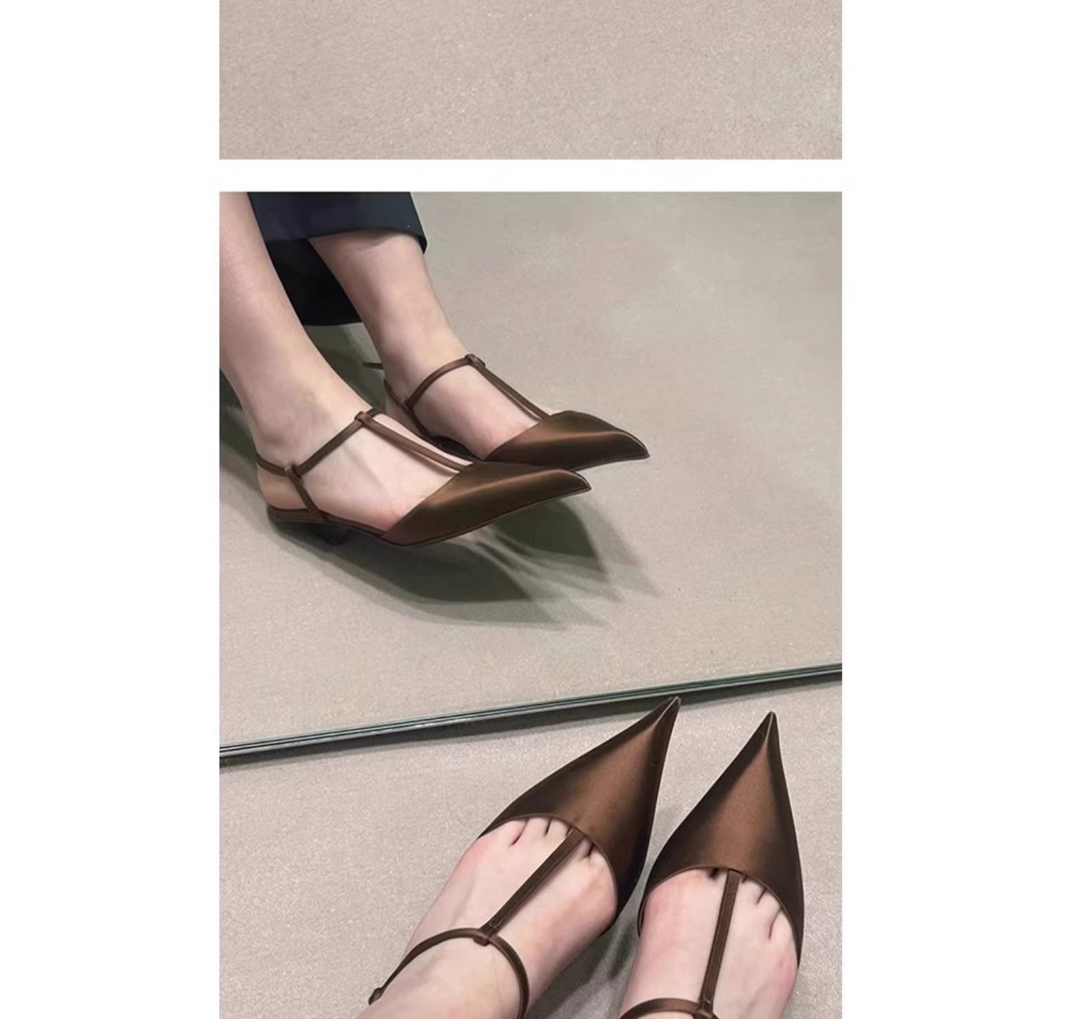 유니섹스 스타일 삼각 힐 뒤트임 샌들 여성용 2026년 여름 모델 T스트랩 새틴 프렌치 스타일 포인티드 토 하이힐스토어 가기