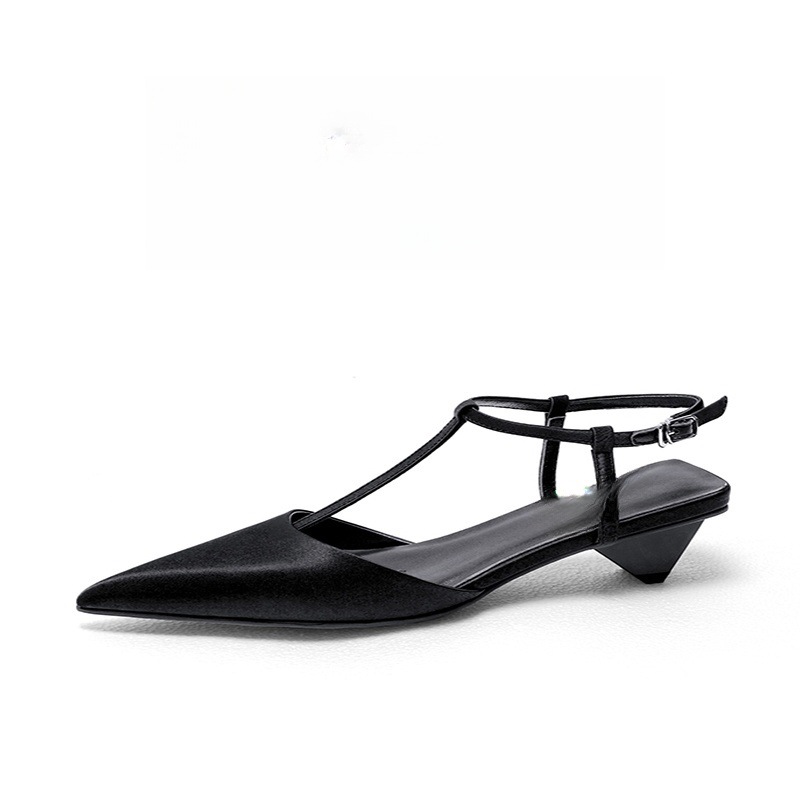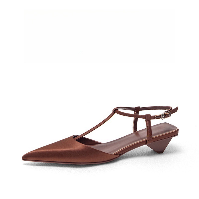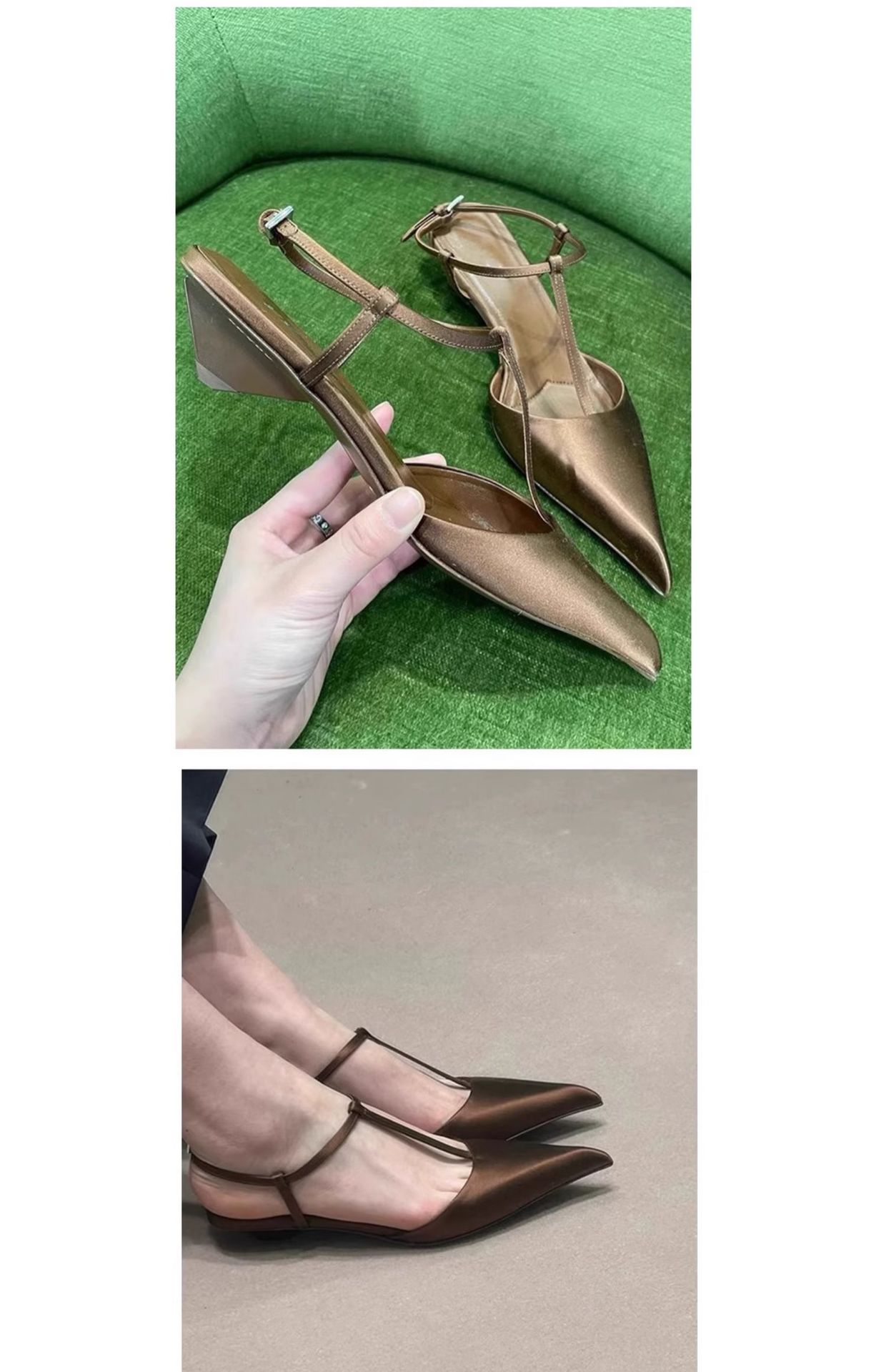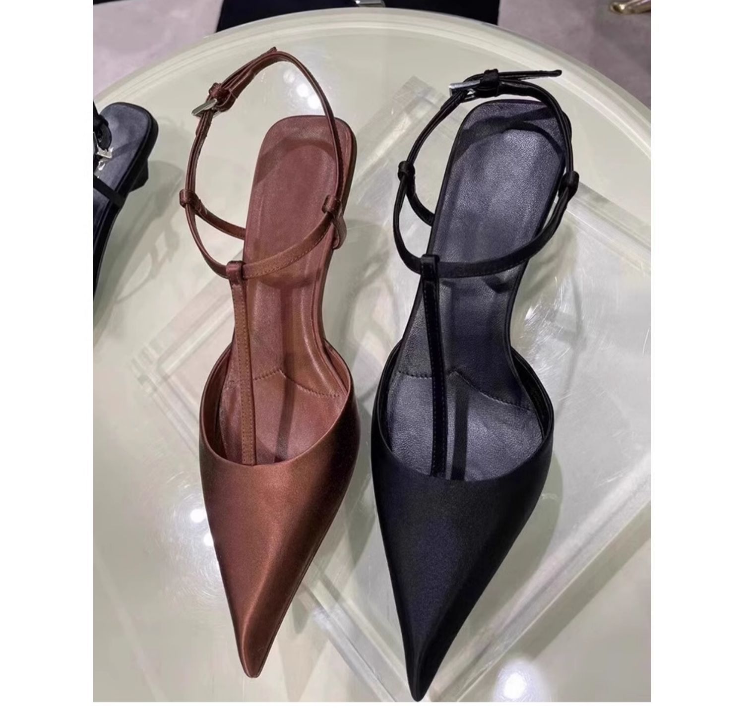 유니섹스 스타일 삼각 힐 뒤트임 샌들 여성용 2026년 여름 모델 T스트랩 새틴 프렌치 스타일 포인티드 토 하이힐