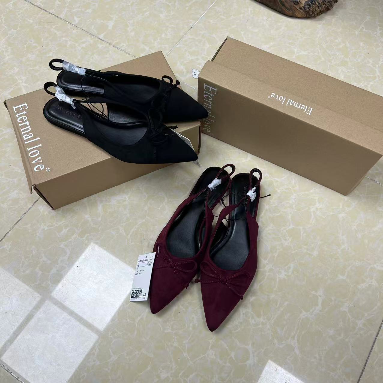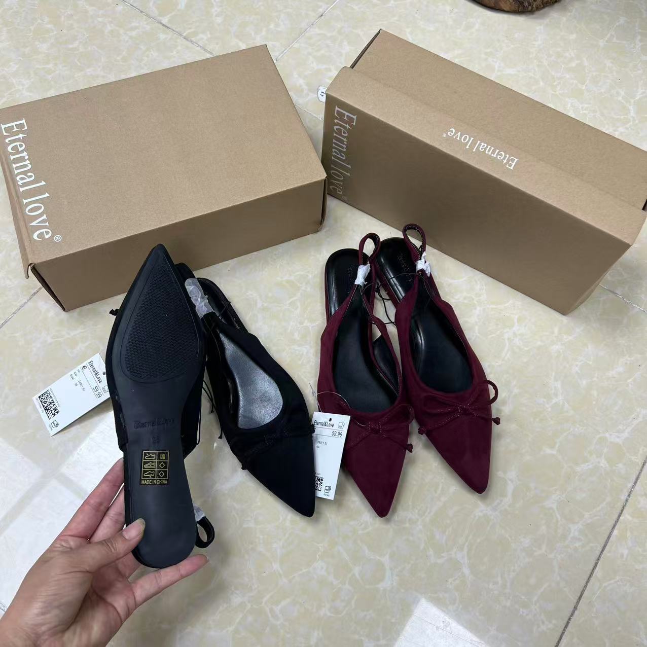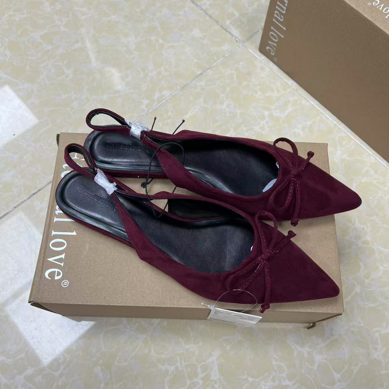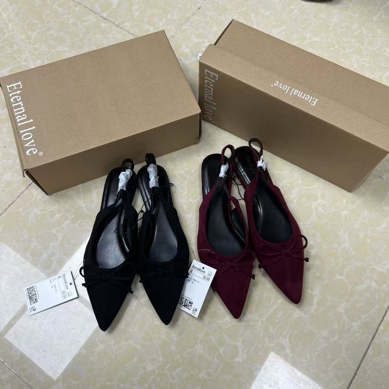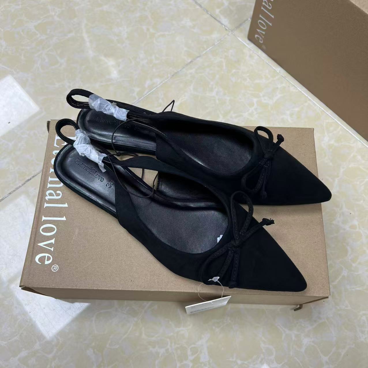 대외 무역 포인티드 토 슈즈, 여름용 펌프스 리본 여성화, 데일리 스타일, 낮은 굽, 발이 피곤하지 않은, 다재다능하고 편안한 신발