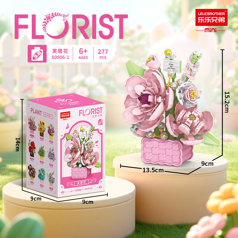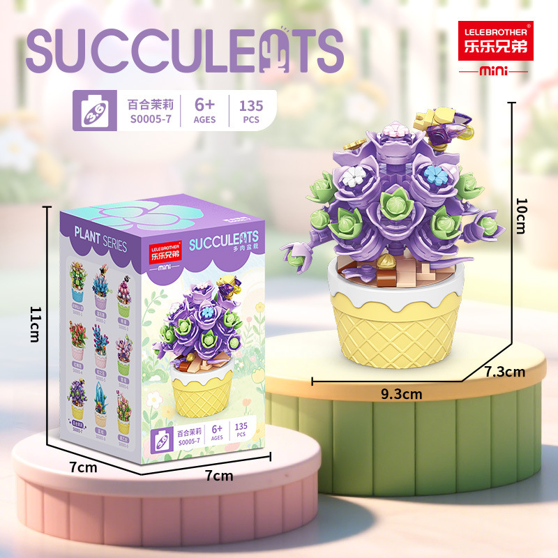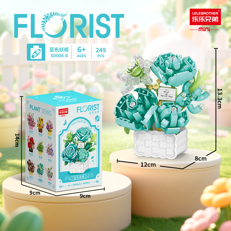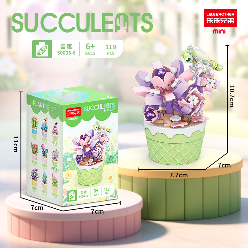 Lele Brothers S0005 고기 화분 영원한 꽃 시리즈 어린이 날 절묘한 데스크탑 장식품 빌딩 블록 도매